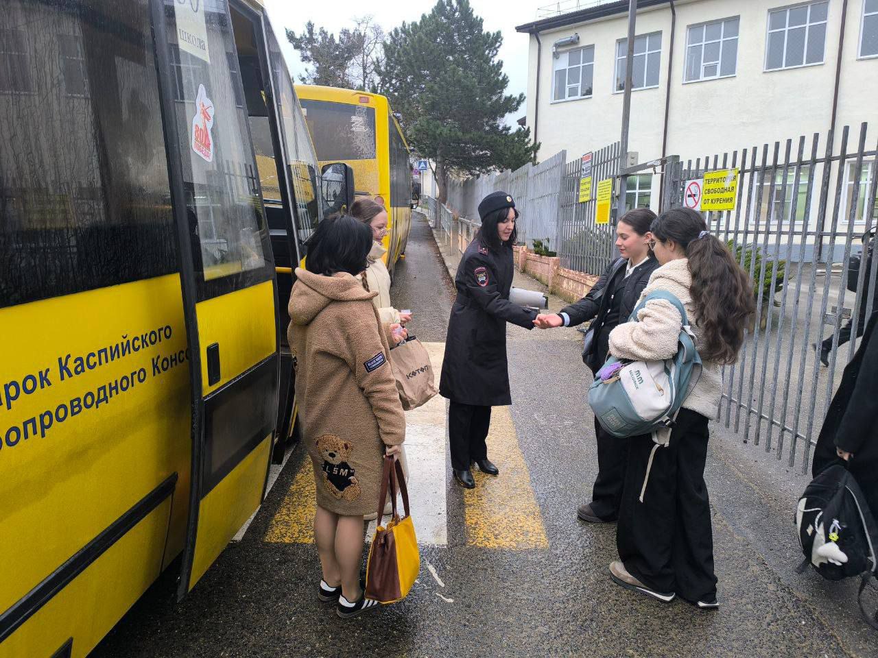 Школьникам вручили памятки по ПДД и световозвращающие элементы, напомнили о безопасном поведении на дороге и во время поездок в школьном автобусе.