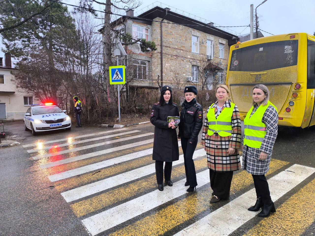Сотрудники Госавтоинспекции совместно с инспектором ОПДН УМВД России по г.Новороссийску встретили учащихся школы №30 поселка Абрау.