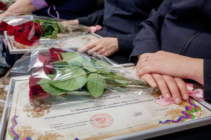 В связи с празднованием Международного женского дня, в том числе в рамках акции «8 Марта – в каждый дом», в Управлении МВД России по городу Краснодару состоялось праздничное собрание представительниц прекрасного пола.