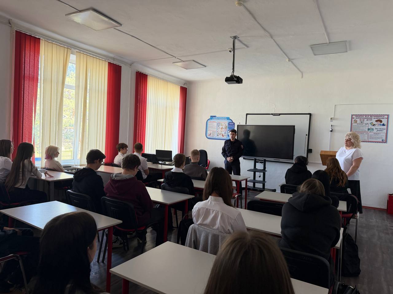 Автоинспекторы напомнили школьникам ключевые Правила дорожного движения, уделив особое внимание безопасному переходу дороги, использованию световозвращающих элементов в тёмное время суток и правильному поведению по пути в школу и обратно.