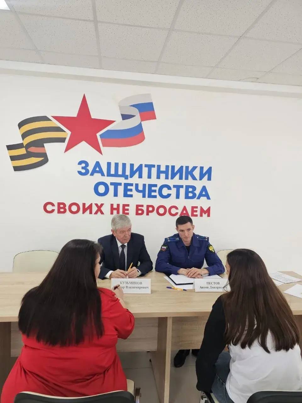 Прокурором района Антоном Пестовым совместно с координатором фонда «Защитники Отечества», главой района проведен личный прием участников специальной военной операции и членов их семей в ст. Калининской Калининского района.