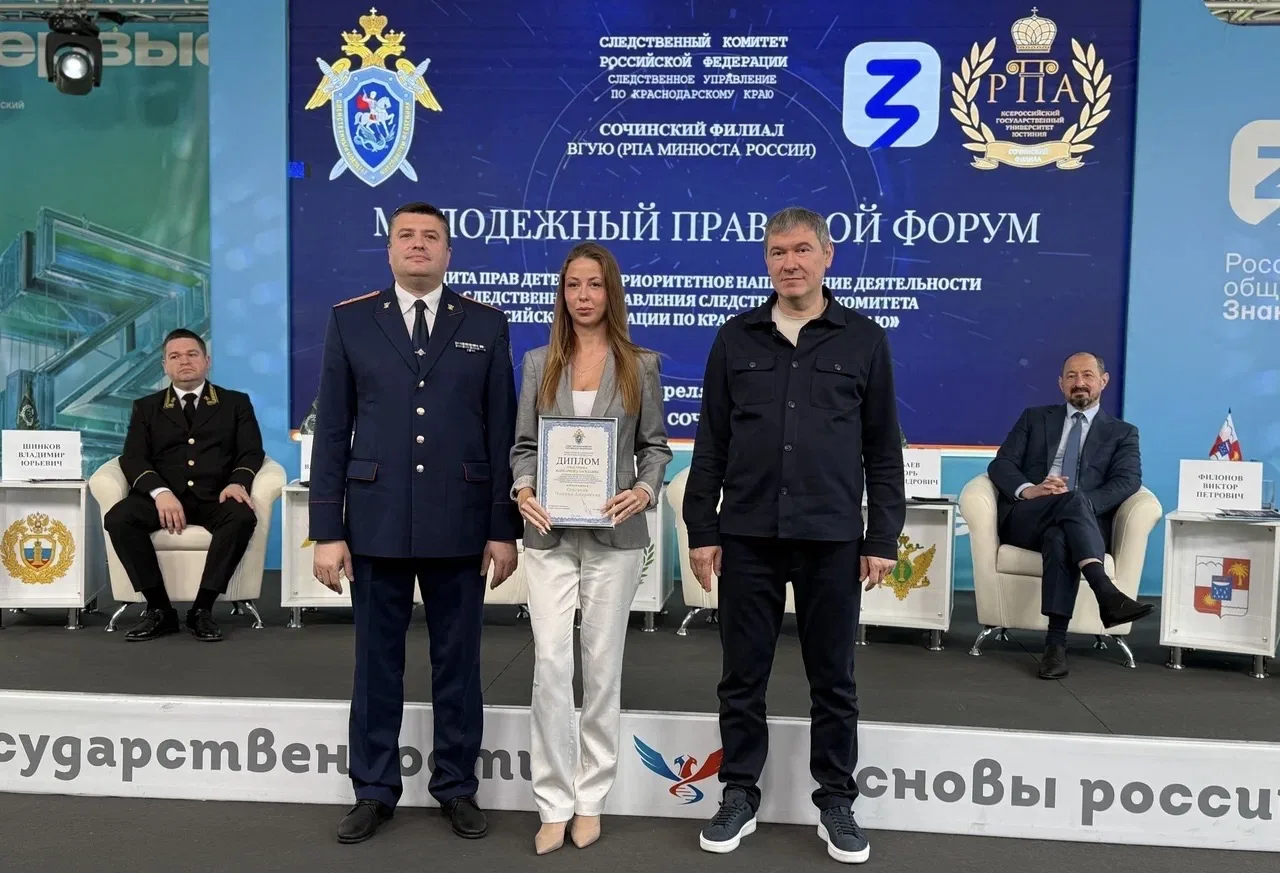 Заместитель руководителя следственного управления СК России по Краснодарскому краю Дмитрий Владимирович Дремлюга принял участие в Молодежном правовом форуме, посвященном вопросам защиты прав детей. Это направление является одним из приоритетных в деятельности органов СК России. В мероприятии также приняли участие представители следственных органов, администрации края, Городского Собрания Сочи, экспертного и научного сообщества, руководство Всероссийского государственного университет юстиции (РПА Минюста России), а также студенты и школьники.