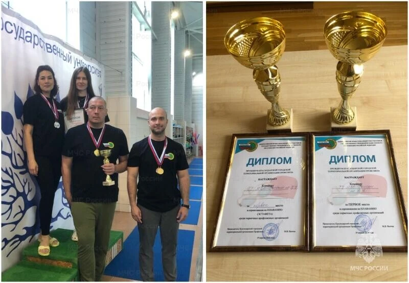 Команда профсоюза ГУ МЧС России по Краснодарскому краю завоевала золото на соревнованиях по плаванию