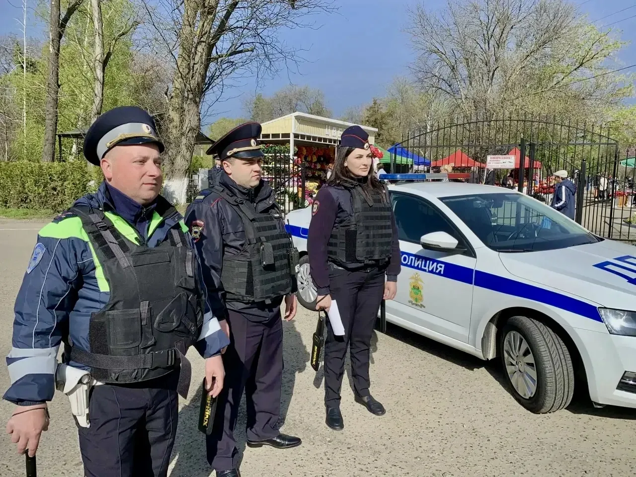 Кубанские полицейские охраняют общественный порядок во время Радоницы
