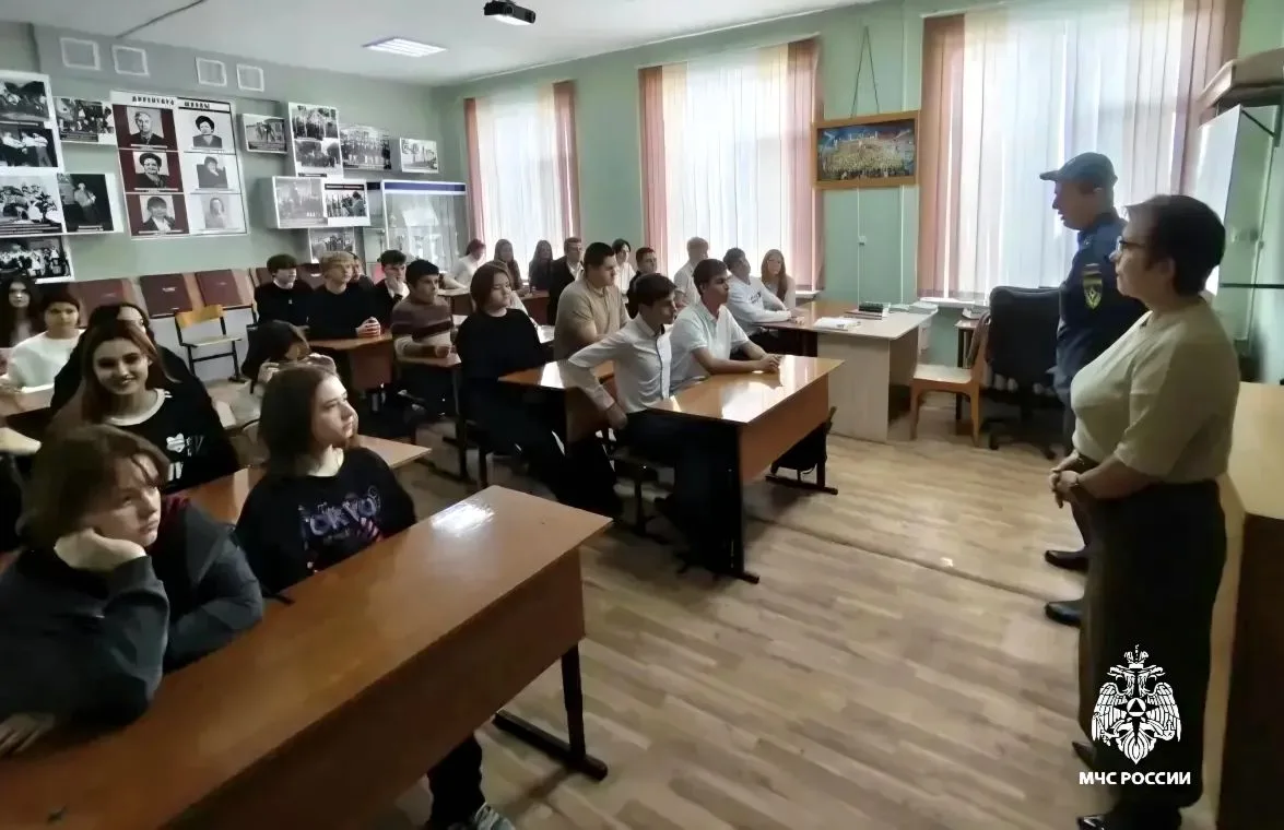 Так, в средней общеобразовательной школе №5 города Лабинска встречу с учащимися организовал начальник 2 караула 40-й пожарно-спасательной части (ПСЧ) Виталий Гончаров.