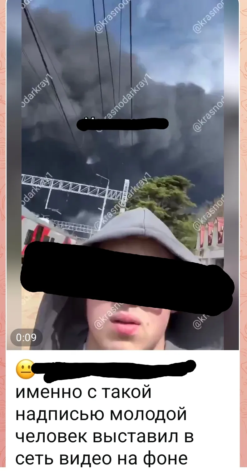 В сети Интернет выявлена публикация, на которой молодой человек снял видео на фоне пожара в Туапсе и выложил это видео в сеть с уничижительными комментариями.