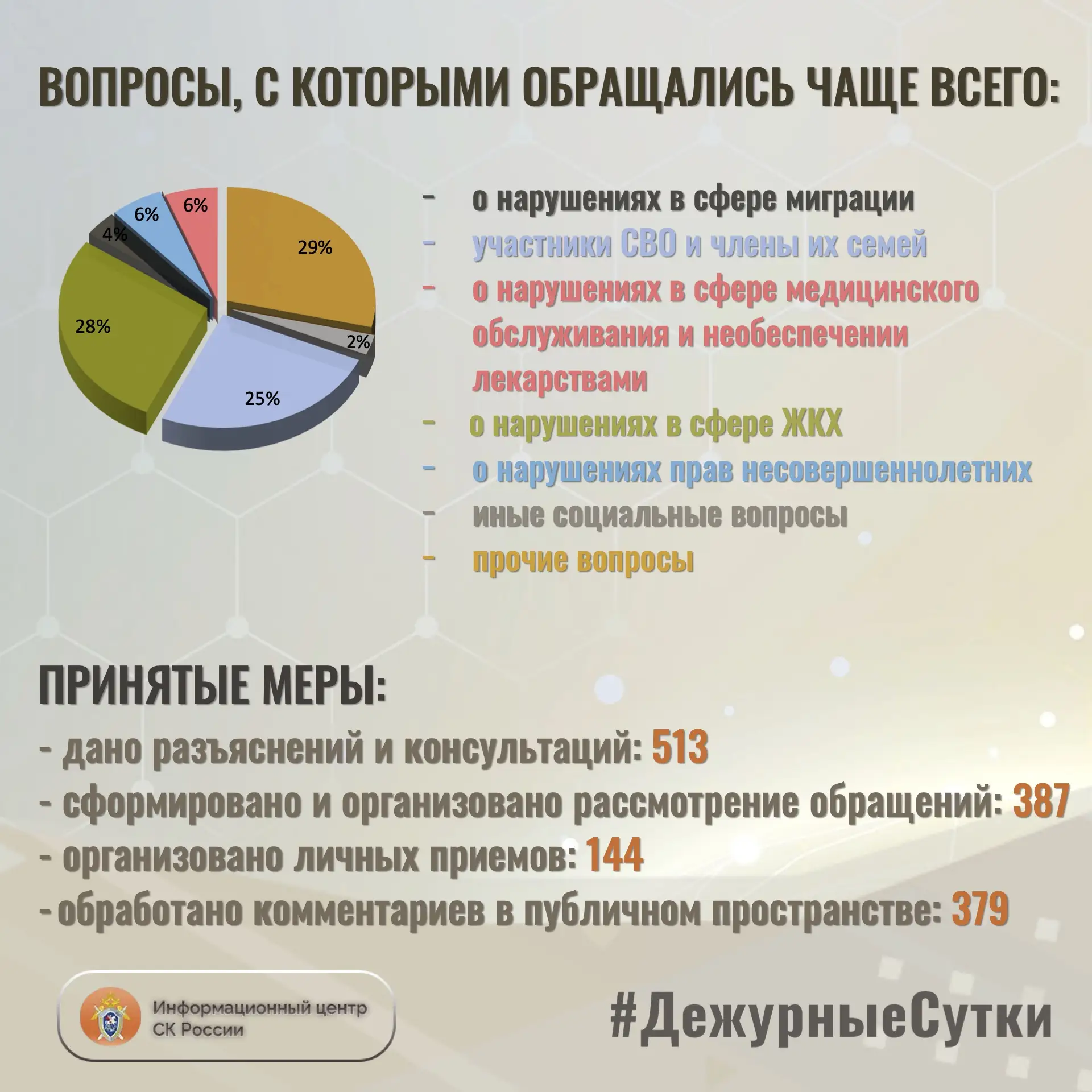 В Информационный центр СК России за прошедшие сутки всего обратилось граждан: 900