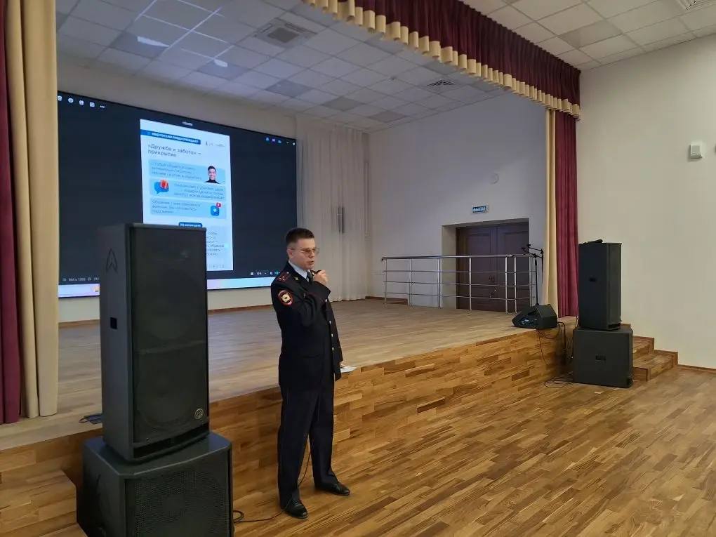 Перед школьниками выступил оперуполномоченный отдела уголовного розыска Отдела полиции (Центральный округ) Управления МВД России по городу Краснодару, старший лейтенант полиции Тютюнников Евгений Олегович. Страж правопорядка рассказал ребятам о современных схемах мошенничества, методах защиты от преступных посягательств и важности личной безопасности. Особое внимание было уделено вопросам ответственности за участие в незаконных действиях и способам противодействия давлению со стороны злоумышленников.