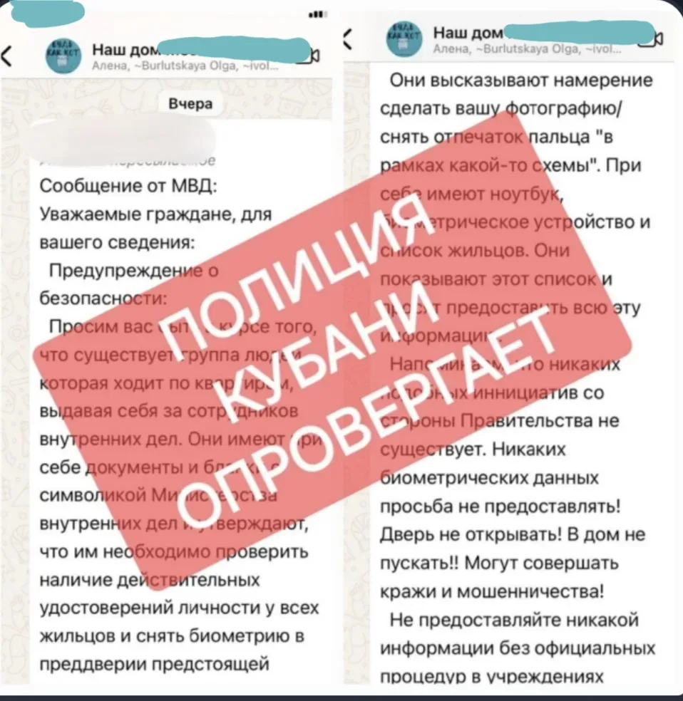 В сети Интернет распространяется недостоверная информация о группе людей, которая ходит по квартирам и выдает себя за сотрудников органов внутренних дел. Эта информация не соответствует действительности!