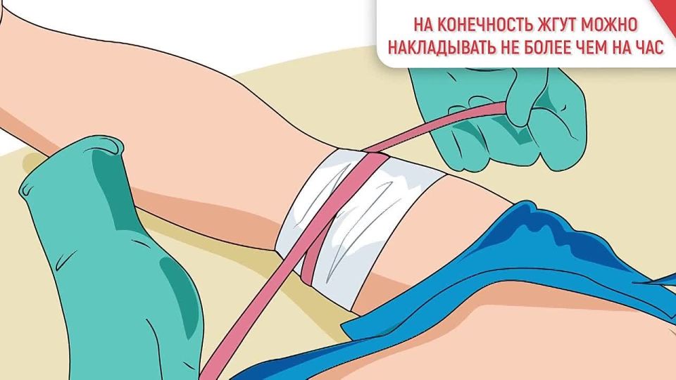 Убедись, что ты и пострадавший в безопасности. Проверь, нет ли угрозы для жизни.Убедись в наличии признаков жизни у пострадавшего.Проведи обзорный осмотр для определения наличия кровотечения. Определи вид кровотечения. ...