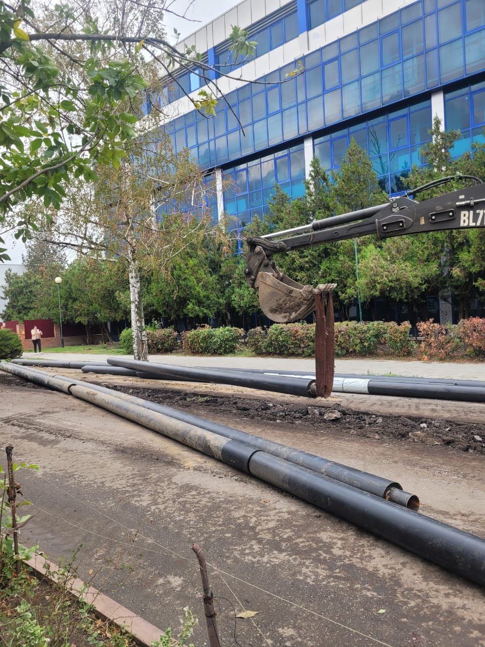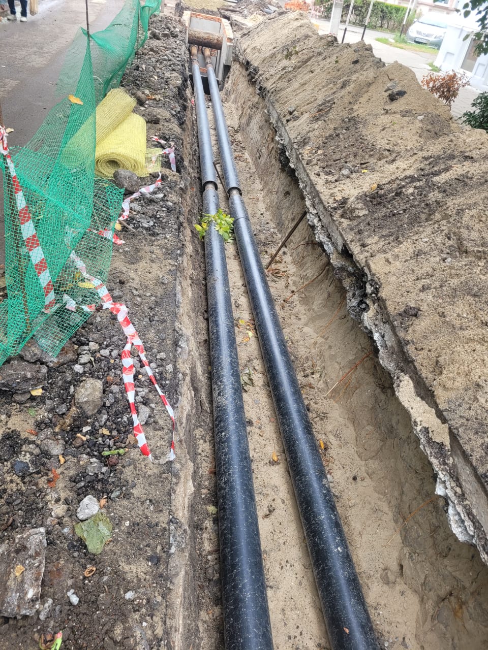 В настоящее время подрядчик ведет работы на участке от ул. Мира до ул. Свердлова. Ближе к центральной улице города демонтируется асфальтовое покрытие и проводятся земляные работы. На участке до этого уже уложены новые трубы.