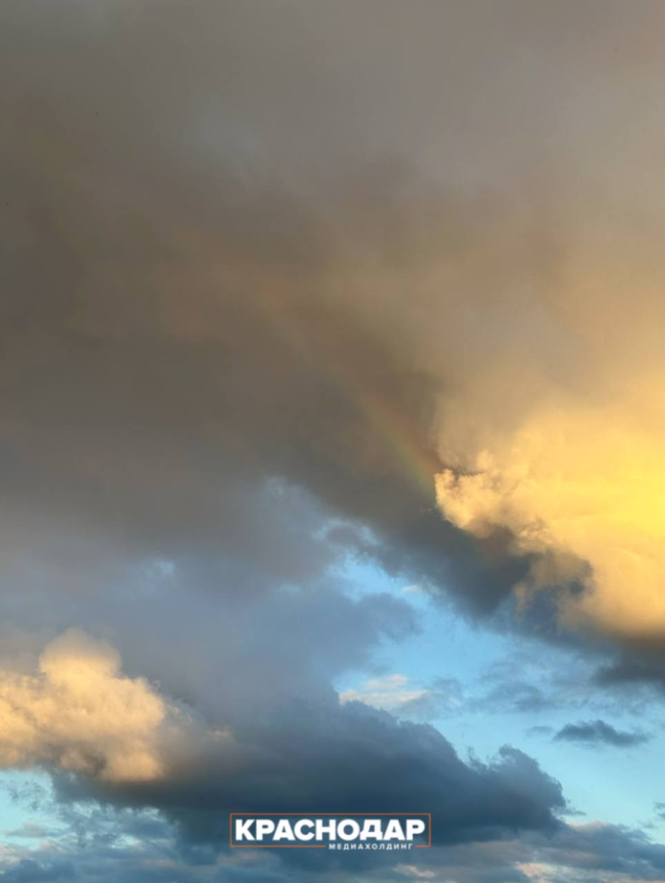 После утреннего дождя над Краснодаром появилась радуга, которая украсила небо на фоне нависающих туч