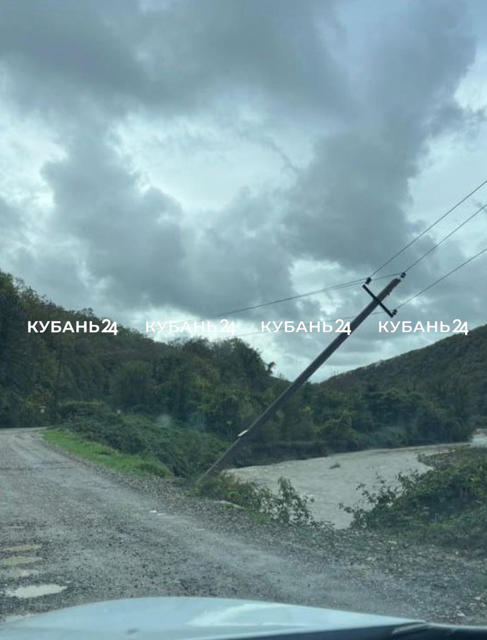 Жители аула Псебе в Туапсинском районе рассказали, что сильные дожди подмыли землю под столбами, и теперь они могут повалиться.