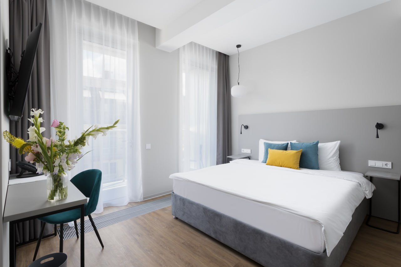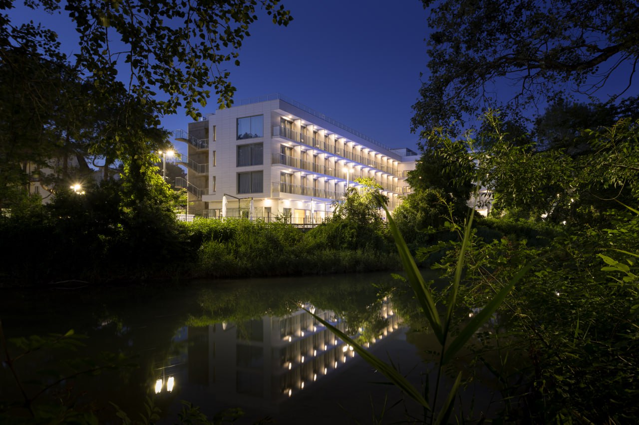 Для гостей оборудованы номера и апартаменты для короткого и продолжительного отдыха. Работают открытые подогреваемые бассейны, термальная зона, небольшой тренажёрный зал и площадки для пляжного волейбола.