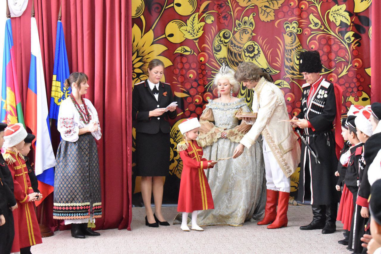 В детском саду № 43 «Буратино» среди участников церемонии были настоятель храма святого Василия Великого поселка Виноградного Василий Феодориди, атаман хутора Красный Курган Иван Калугин, а также специалисты Краснодарского государственного историко-археологического музея-заповедника имени Е.Д. Фелицына, которые перевоплотились в исторические личности – императрицу Екатерину II и ее сподвижника Григория Потемкина.