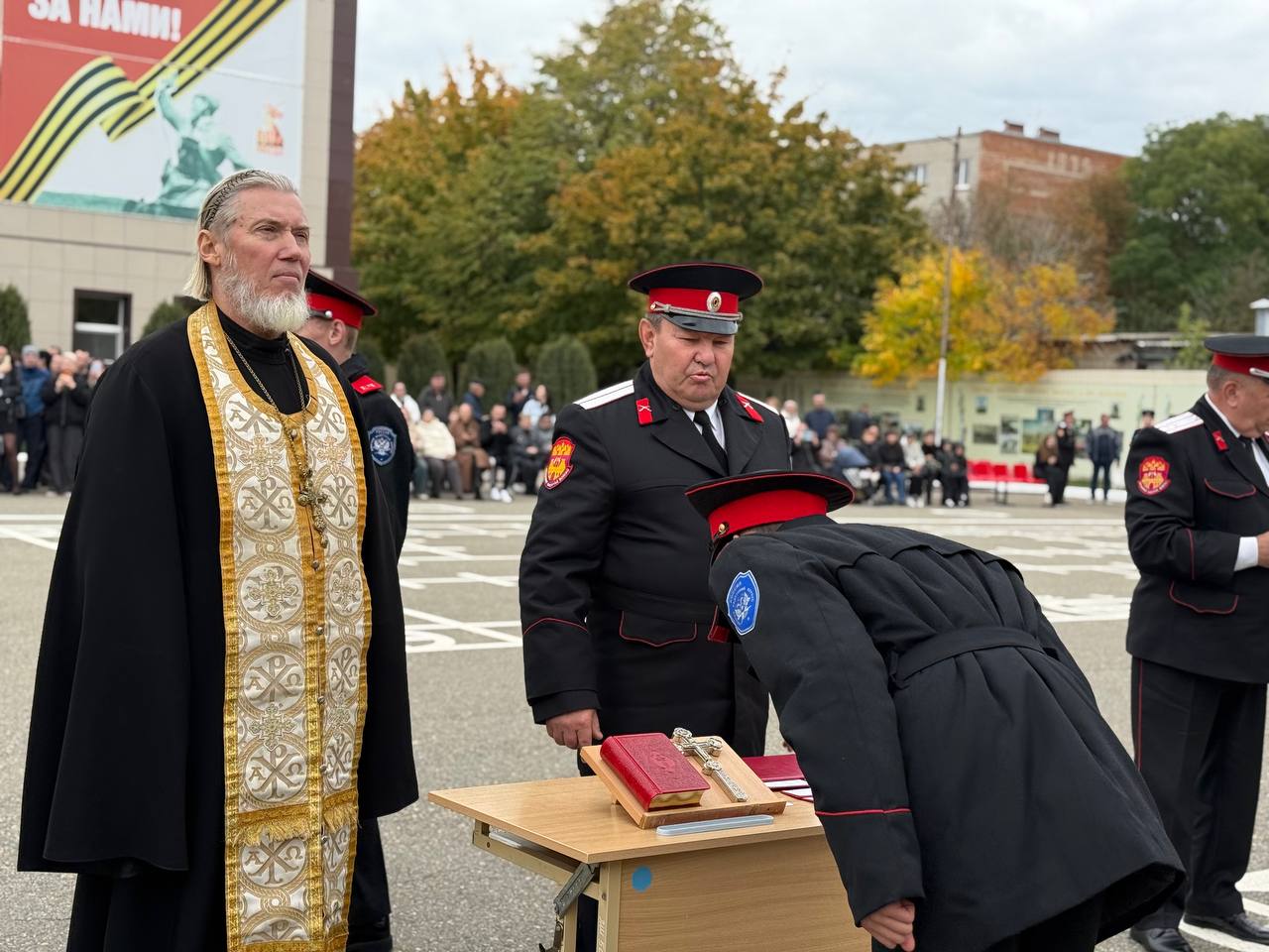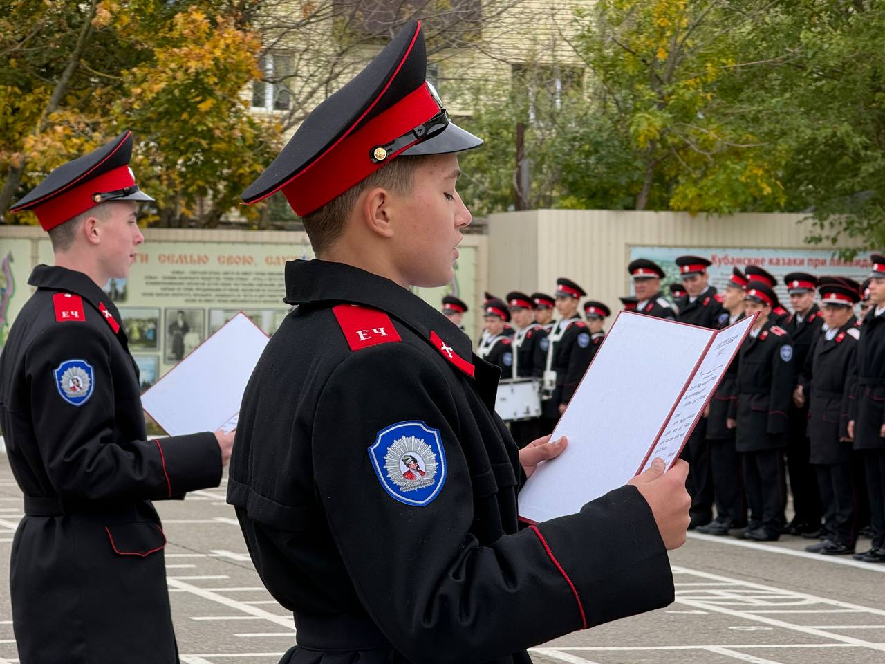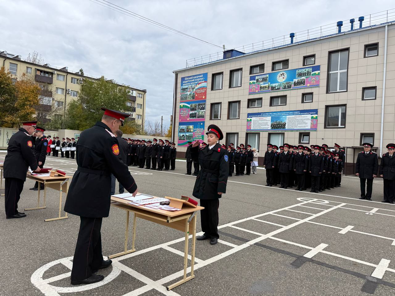 Также на плацу юные кадеты, только поступившие в корпус, вступая в ряды кадетства обещали хранить традиции Кубанского казачества, честь казака Ейского казачьего кадетского корпуса имени атамана Захария Чепеги.