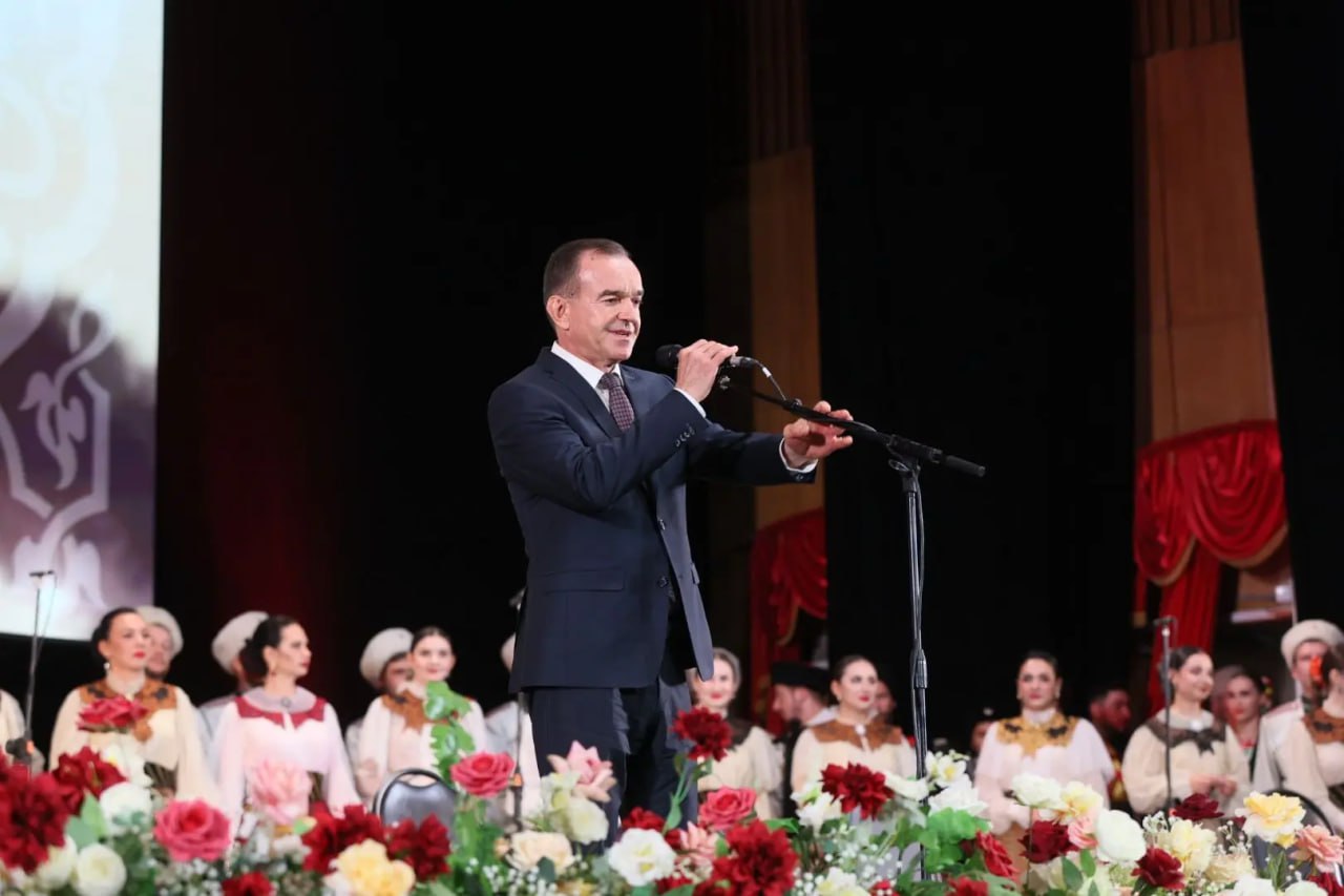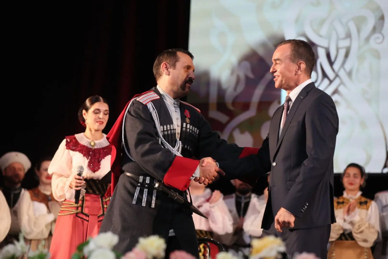 – 14 октября исполнилось 214 лет со дня основания Кубанского казачьего хора. Его история – неотъемлемая часть становления нашего края. Вы исполняете и народные песни, и авторские современные, но в каждой есть душа, бескрайняя любовь к Отечеству. Казаки пели и в минуты радости, и когда тяжело было, потому что в песне заложена большая сила пробуждать самое светлое. Спасибо за то, что вы сохраняете наши традиции, культуру. Ваше творчество вдохновляет, дарит надежду, вселяет веру в сердца людей и в сегодняшнее непростое время. Кубанский казачий хор – достояние России, духовная опора нашего народа. И в этом огромная заслуга его художественного руководителя Виктора Захарченко. Ваш труд, Виктор Гаврилович, – это подлинное служение искусству и родной земле, – сказал Вениамин Кондратьев.