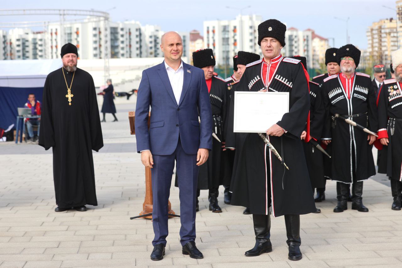Александр Кравцов поздравил всех от имени Правления Кубанского казачьего войска и отметил, что казаки всегда на переднем рубеже – там, где нужна помощь. Сергей Гричаненко добавил, что во все времена казаки беззаветно служили Отчизне и народу, проявляли смелость и мужество. Кирилл Тишевецкий сказал, что казаки были и будут символом отваги и преданности своей стране как на полях сражений, так и в мирное время.