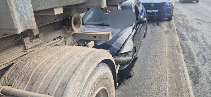 Авария произошла на трассе «Новороссийск-Керчь». 45-летний водитель BMW не выдержал безопасную дистанцию с «КамАЗом». Легковой автомобиль врезался в большегруз.
