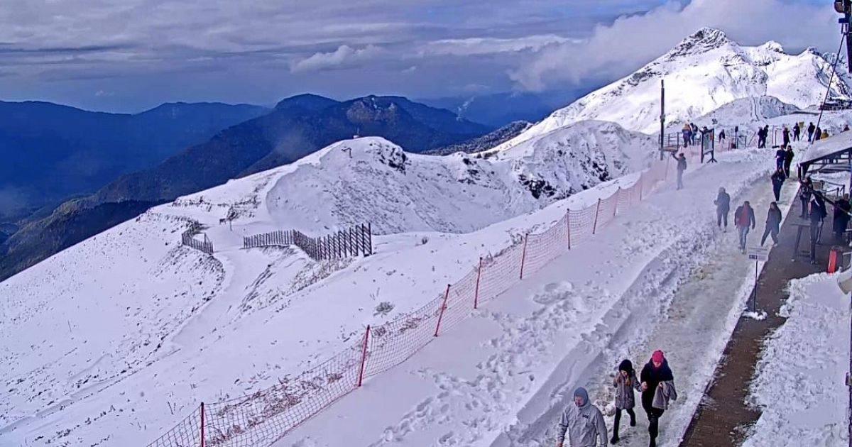 По информации курорта «Роза Хутор», на вершине Роза Пик (2320 метров) зафиксирована высота снежного покрова в 56 сантиметров. Там же наблюдается температура воздуха +2 градуса и ветер со скоростью 10 м/с.