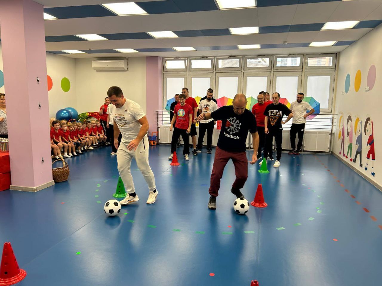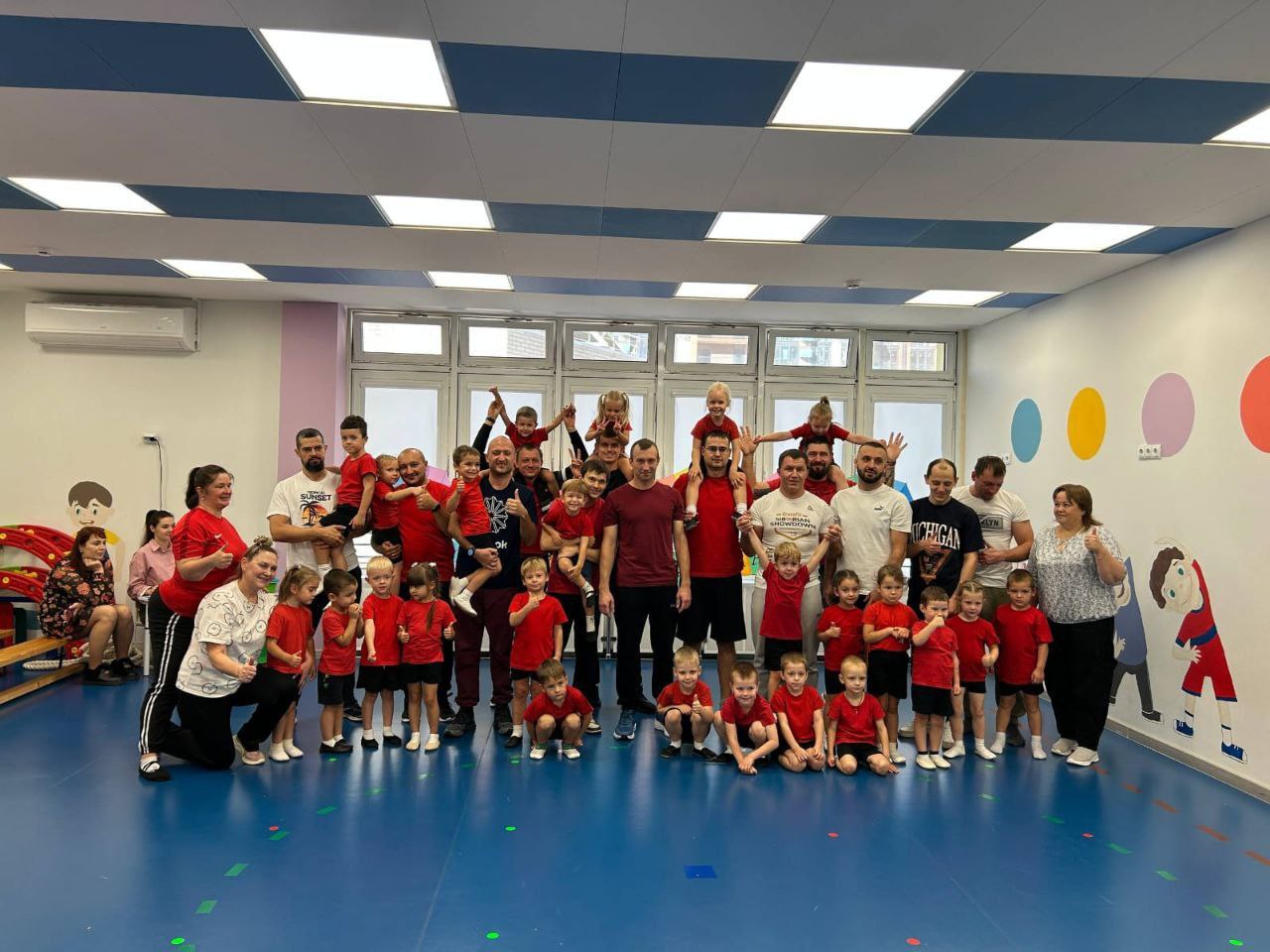 Соревнования в несколько этапов провели в детском саду № 236. Дети привели своих пап. Вместе они показали скорость, силу и ловкость.