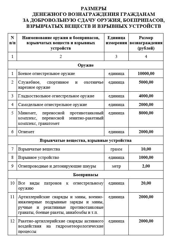 Согласно Положения, граждане Российской Федерации, иностранные граждане и лица без гражданства, достигшие восемнадцатилетнего возраста, добровольно сдавшие в территориальный орган МВД РФ предметы вооружения, имеют право на получение денежного вознаграждения в определенных размерах.