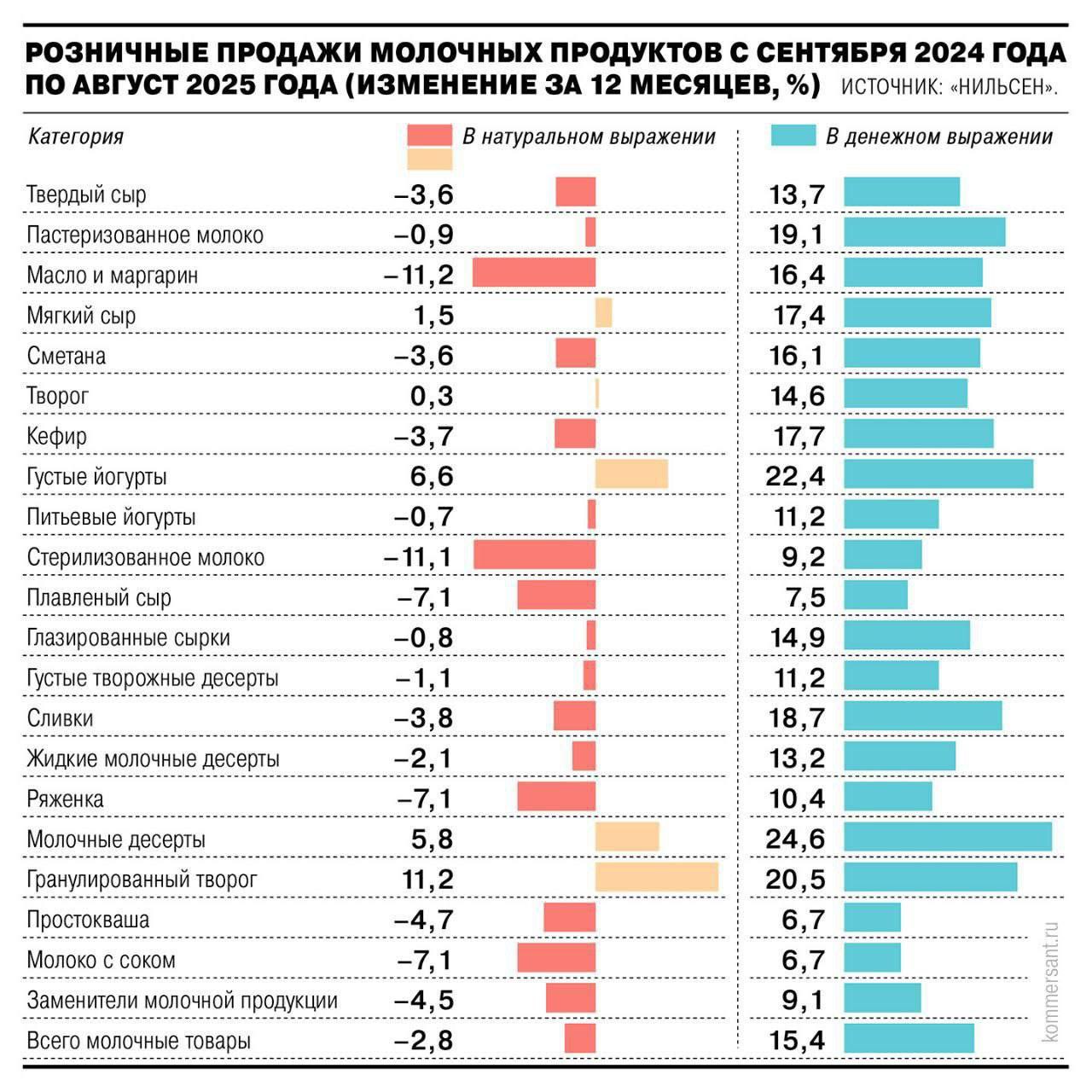 Масло подорожало на 34%, молоко и сметана — на 22%, сыры — на 19%. Согласно данным аналитиков, продажи молочки упали уже на 11%.