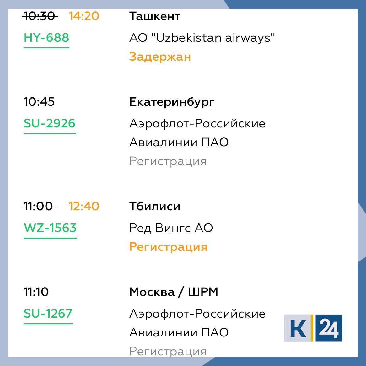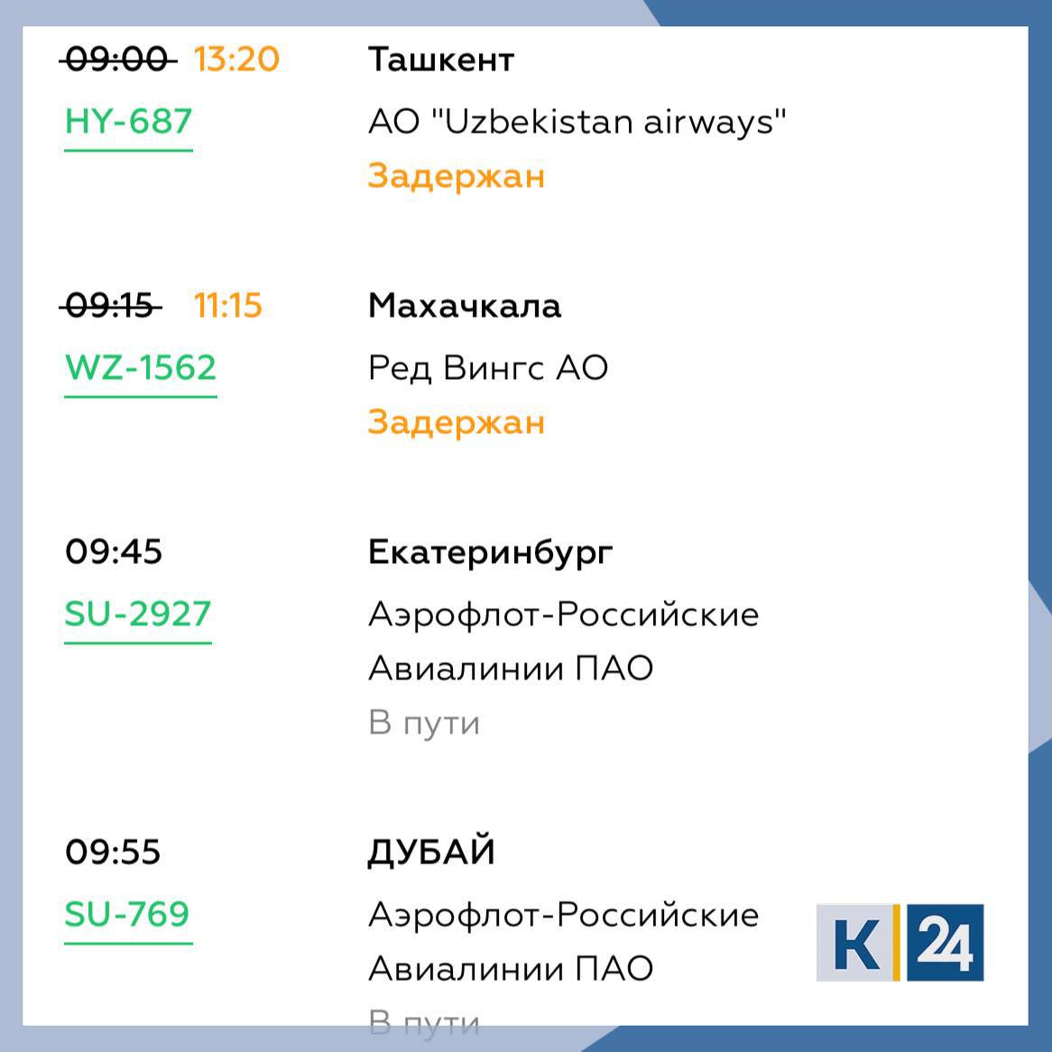 Три самолета задерживаются согласно онлайн-табло. Два на прилет, один — на вылет.