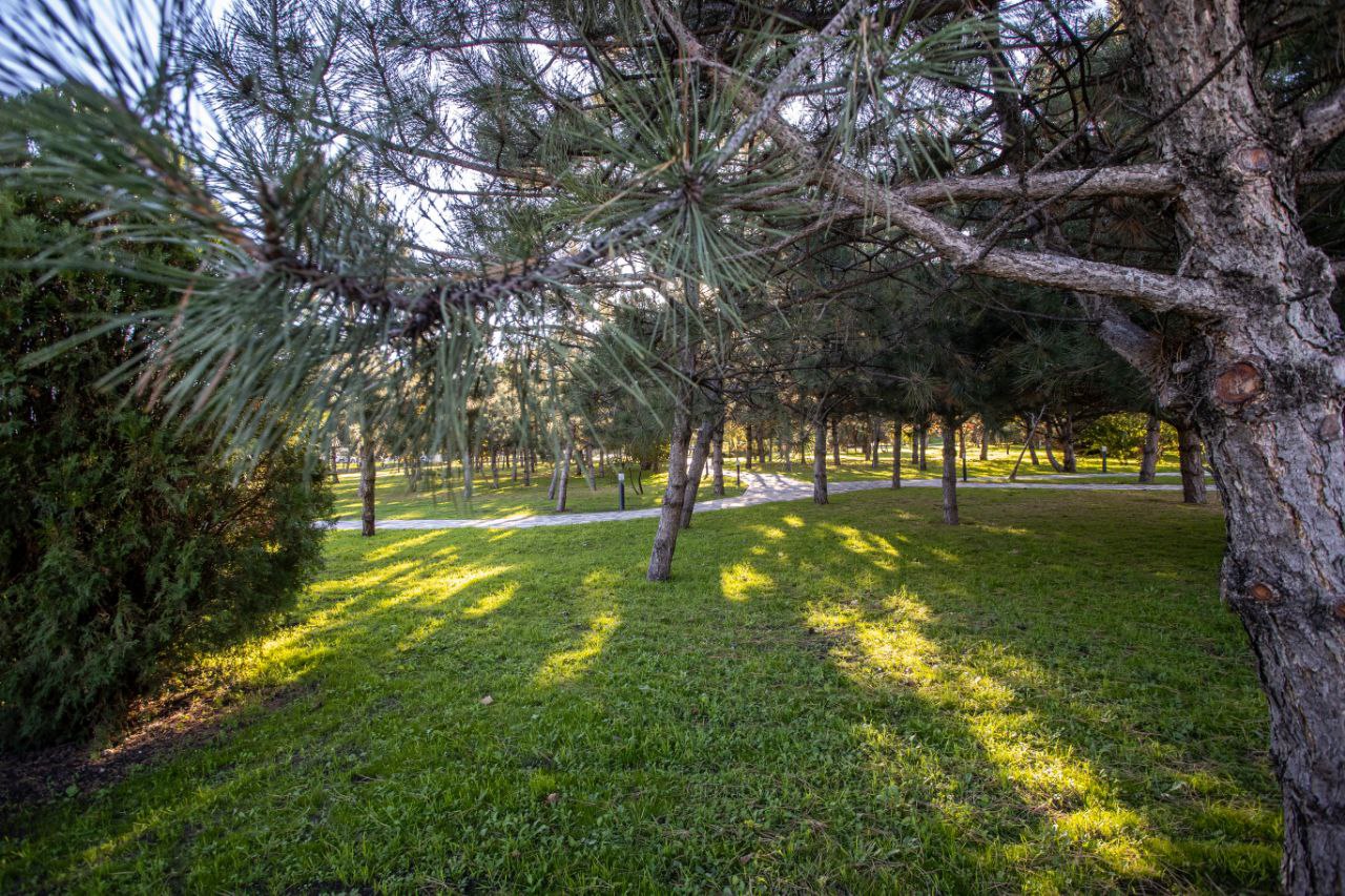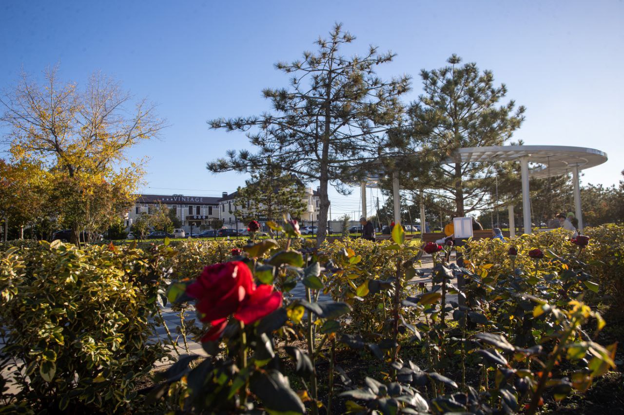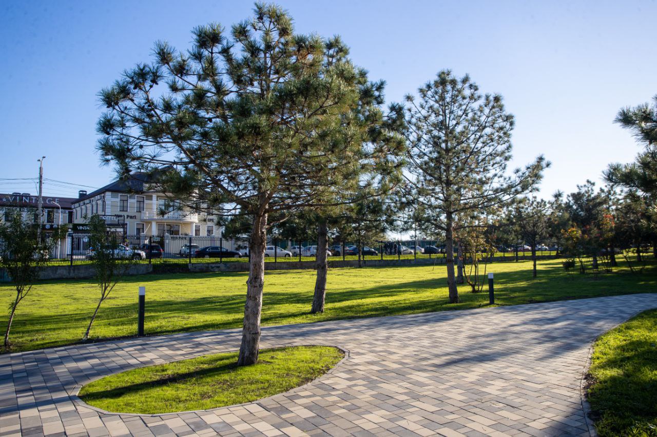 На территории проведена досыпка плодородного грунта, выравнивание рельефа и устройство современной автоматической и капельной системы полива. Высажен свежий газон площадью около 6000 квадратных метров, обновлены садовые бордюры, переложена тротуарная плитка. Проведена санитарная обрезка деревьев и кустарников, удалены сухие и аварийные насаждения.