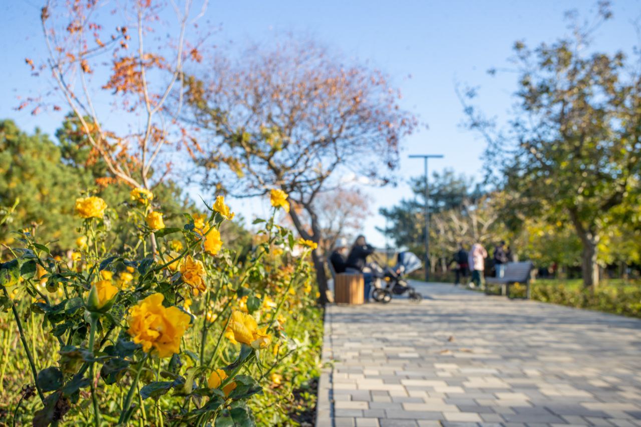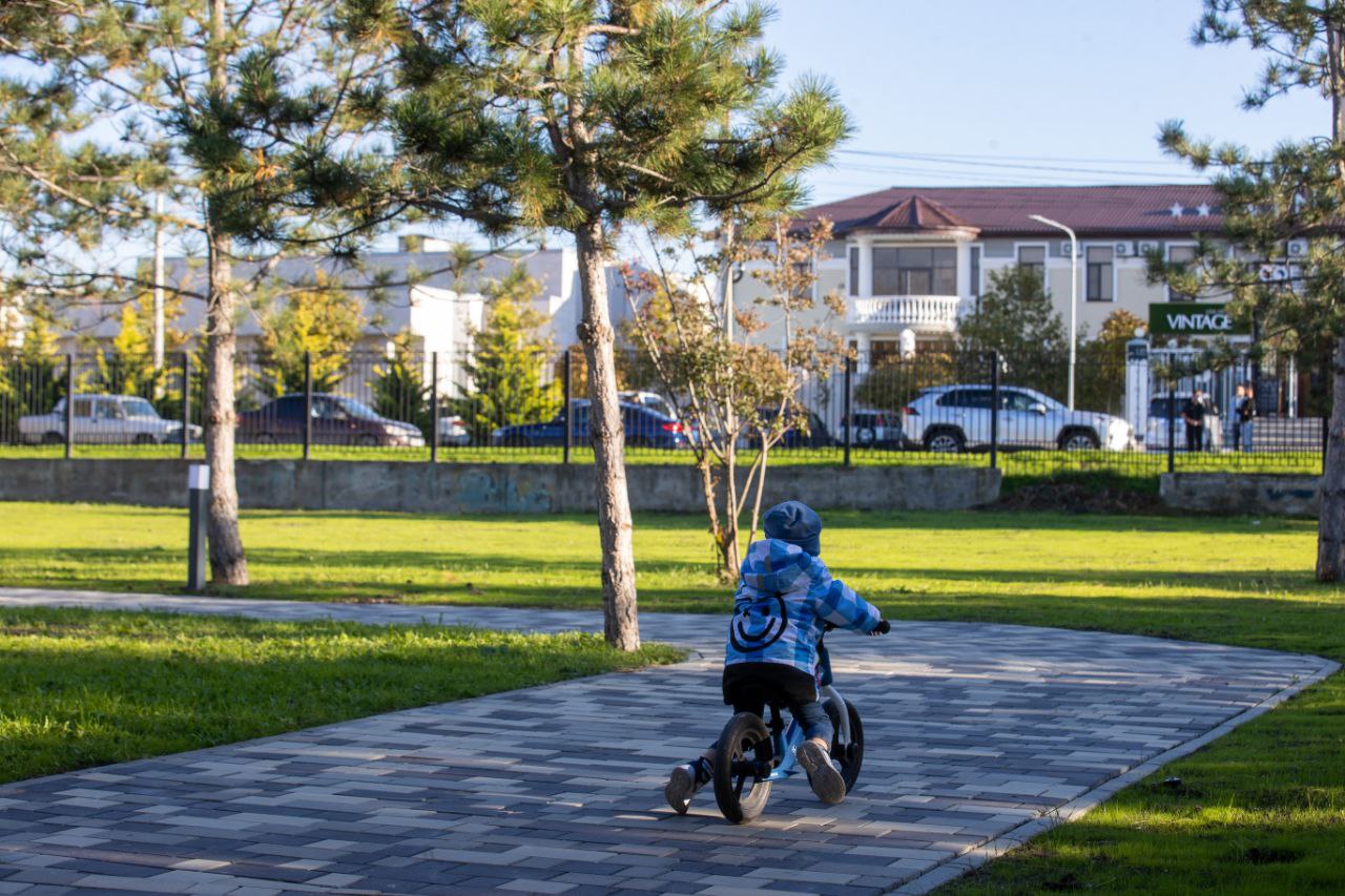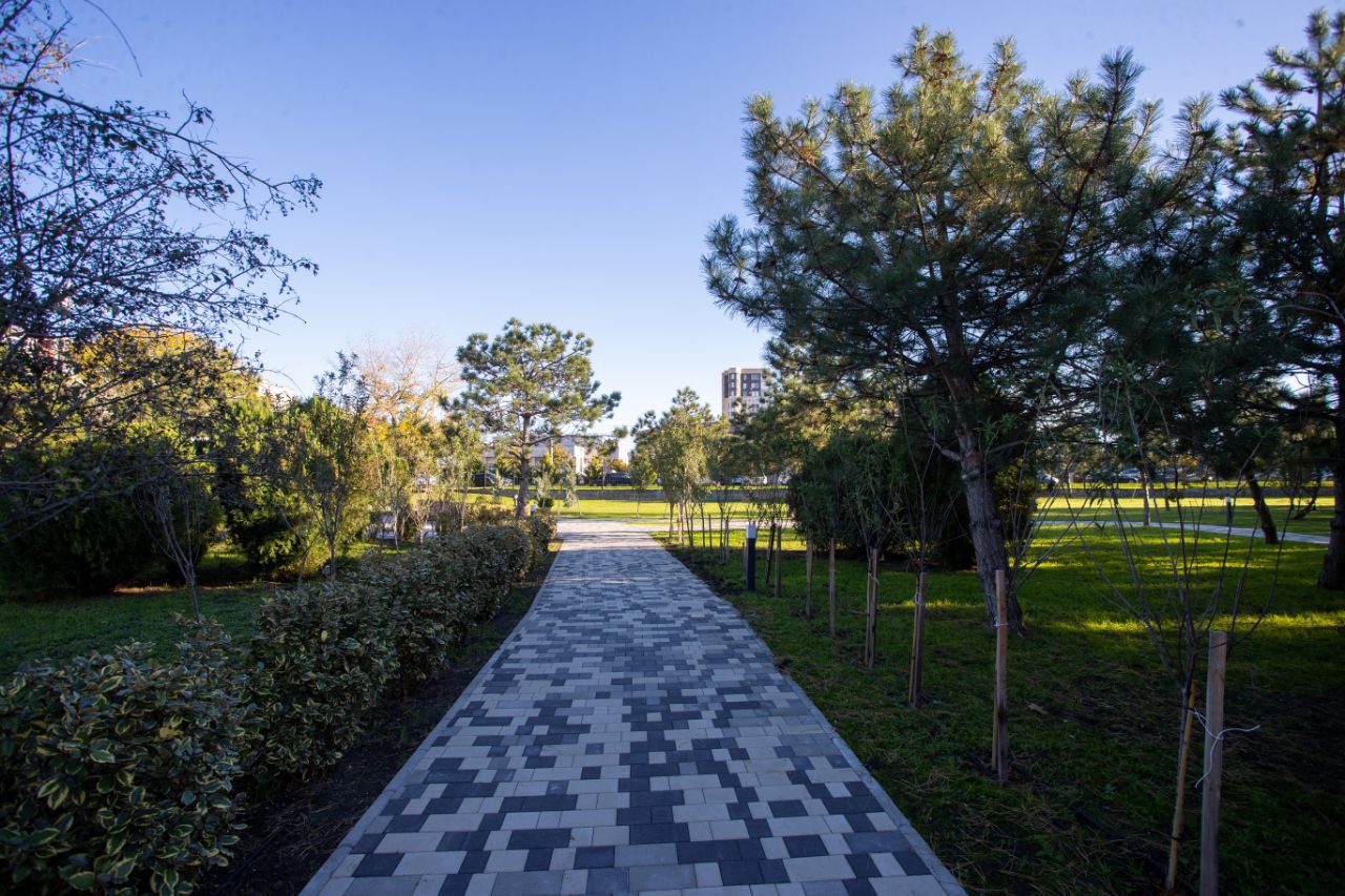 На территории проведена досыпка плодородного грунта, выравнивание рельефа и устройство современной автоматической и капельной системы полива. Высажен свежий газон площадью около 6000 квадратных метров, обновлены садовые бордюры, переложена тротуарная плитка. Проведена санитарная обрезка деревьев и кустарников, удалены сухие и аварийные насаждения.