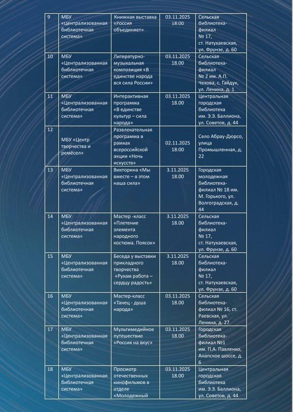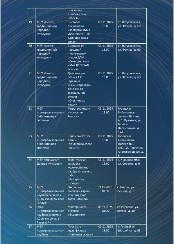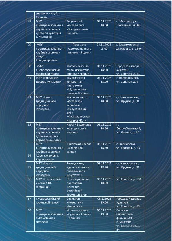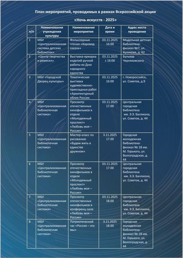 Для жителей и гостей города-героя Новороссийска 03 ноября пройдет более полусотни различных мероприятий в рамках акции «Ночь искусств»