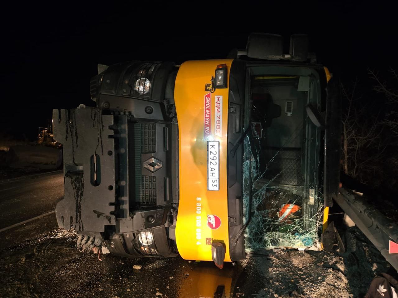 В результате опрокидывания произошла утечка топлива и высыпание груза за пределы дороги — в прилегающий лесной массив. Загрязнён почвенный слой.