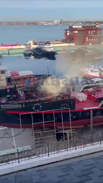 В Анапе у причала загорелся теплоход
