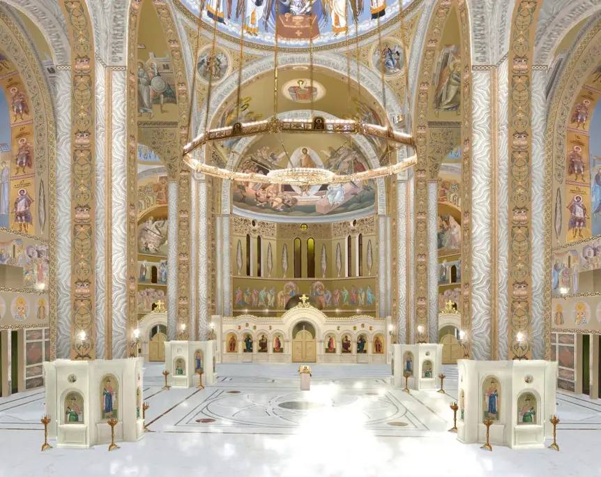 Обсудили варианты оформления внутреннего убранства и схемы расположения иконных образов иконостаса. Приоритет отдается ручной росписи.