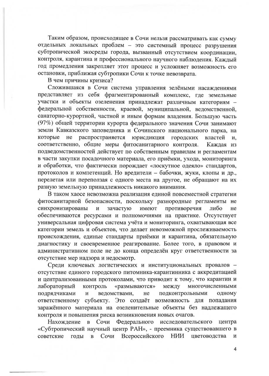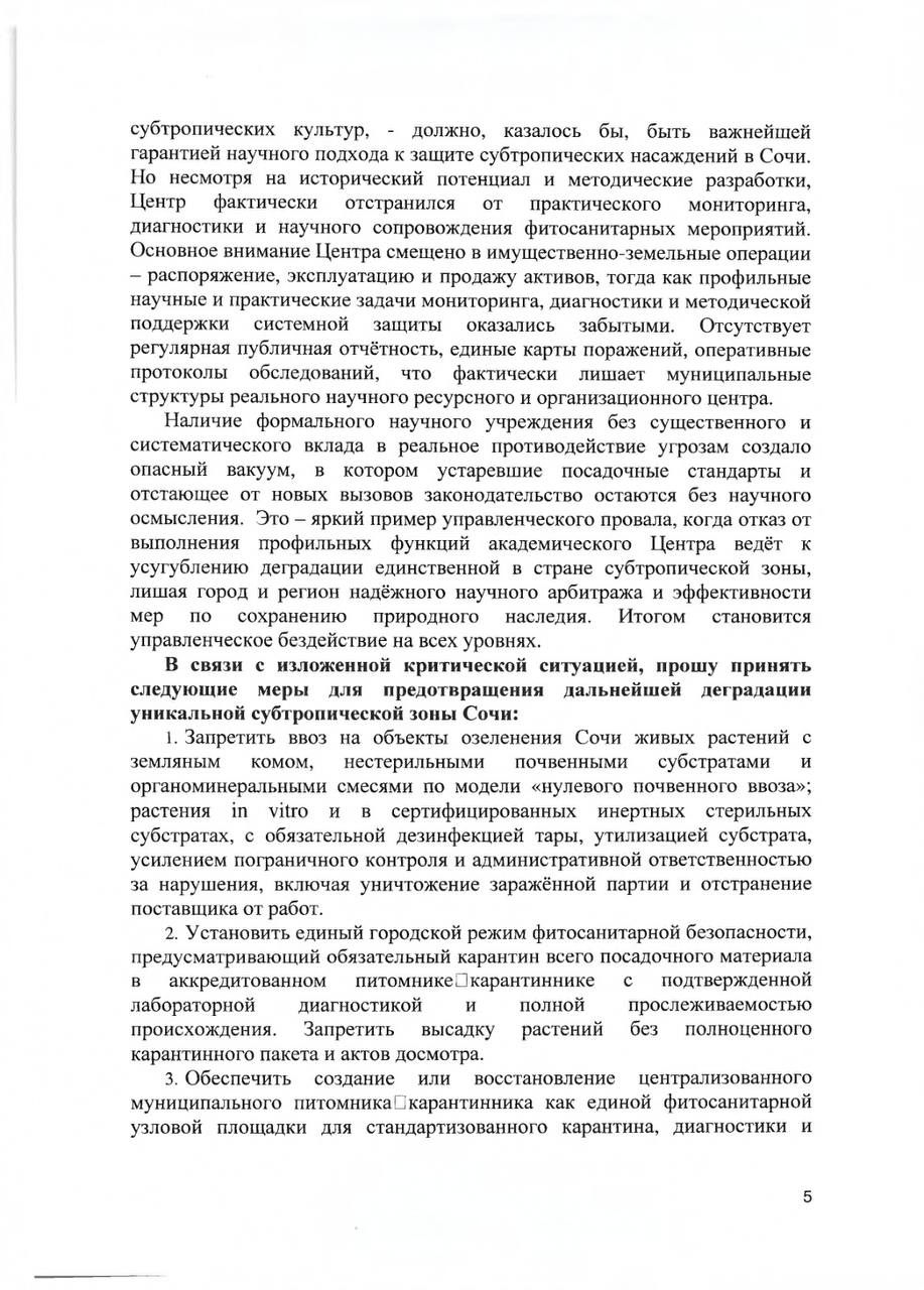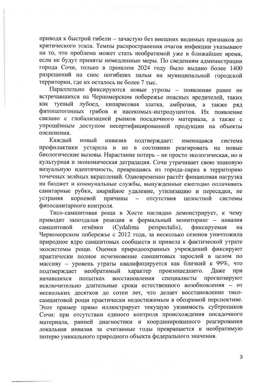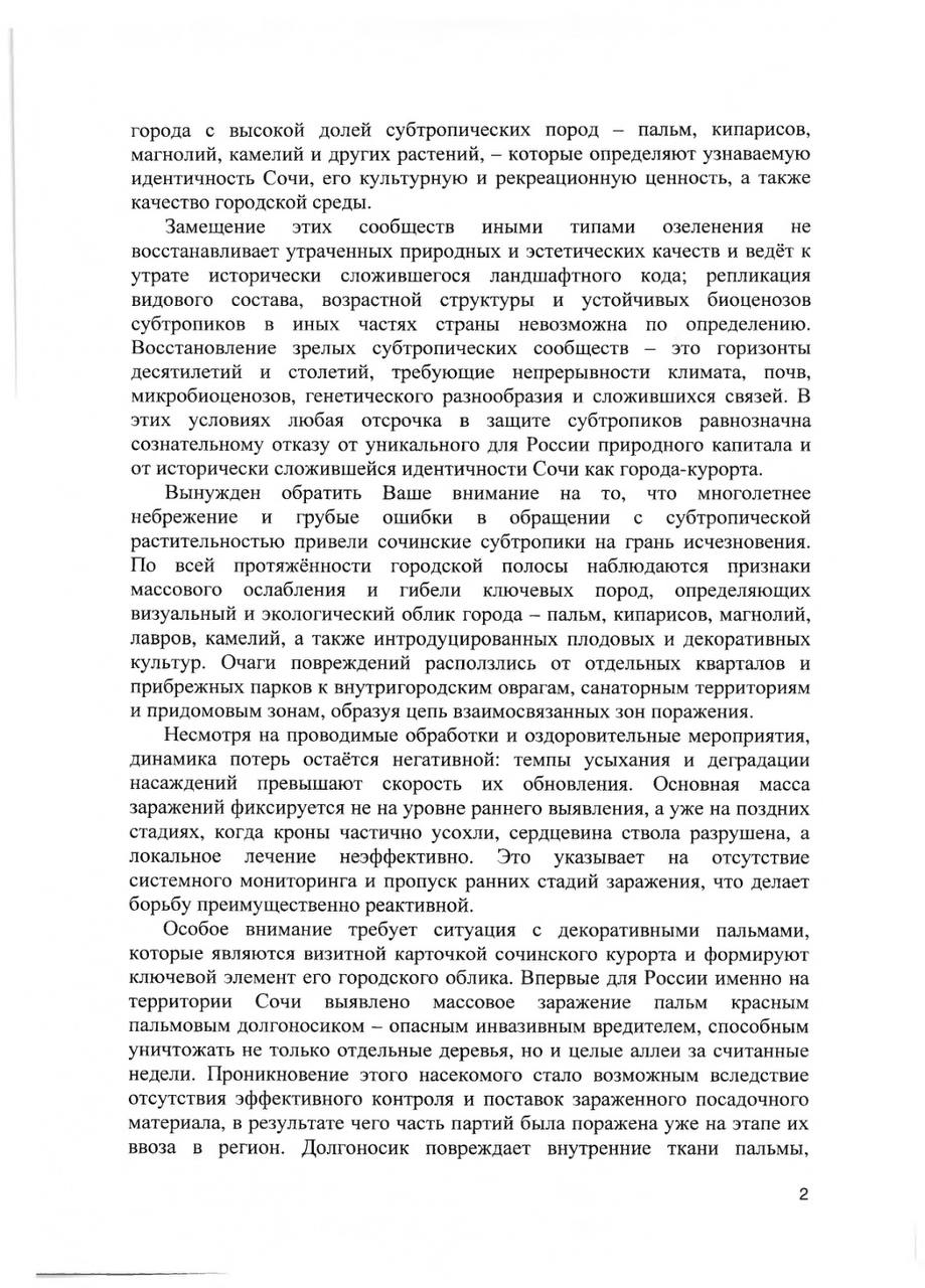 О необходимости принятия мер для спасения уникальных субтропических насаждений города-курорта федерального значения Сочи