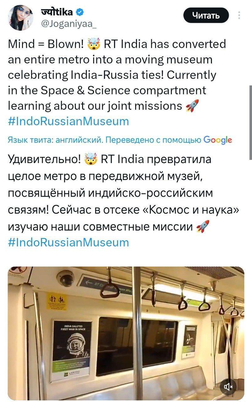 «RT India превратил целое метро в передвижной музей, посвящённый индийско-российским связям».