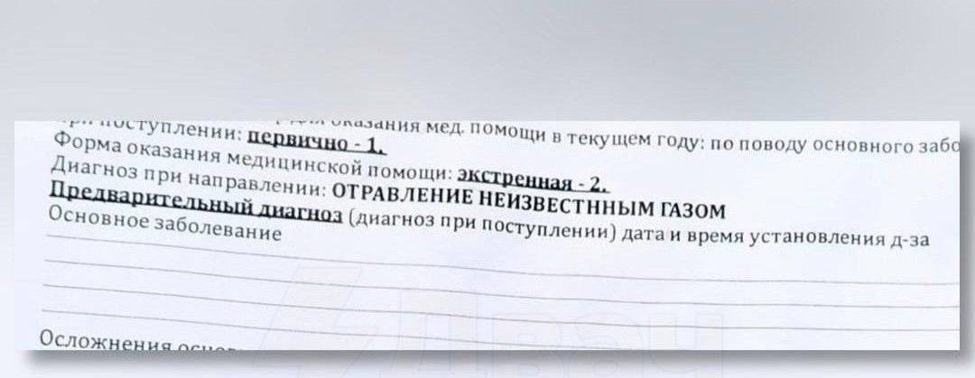 Вечером госпитализировали ещё двоих пострадавших, у которых началась диарея и рвота с кровью. Предварительно, все трое отравились неизвестным газом.