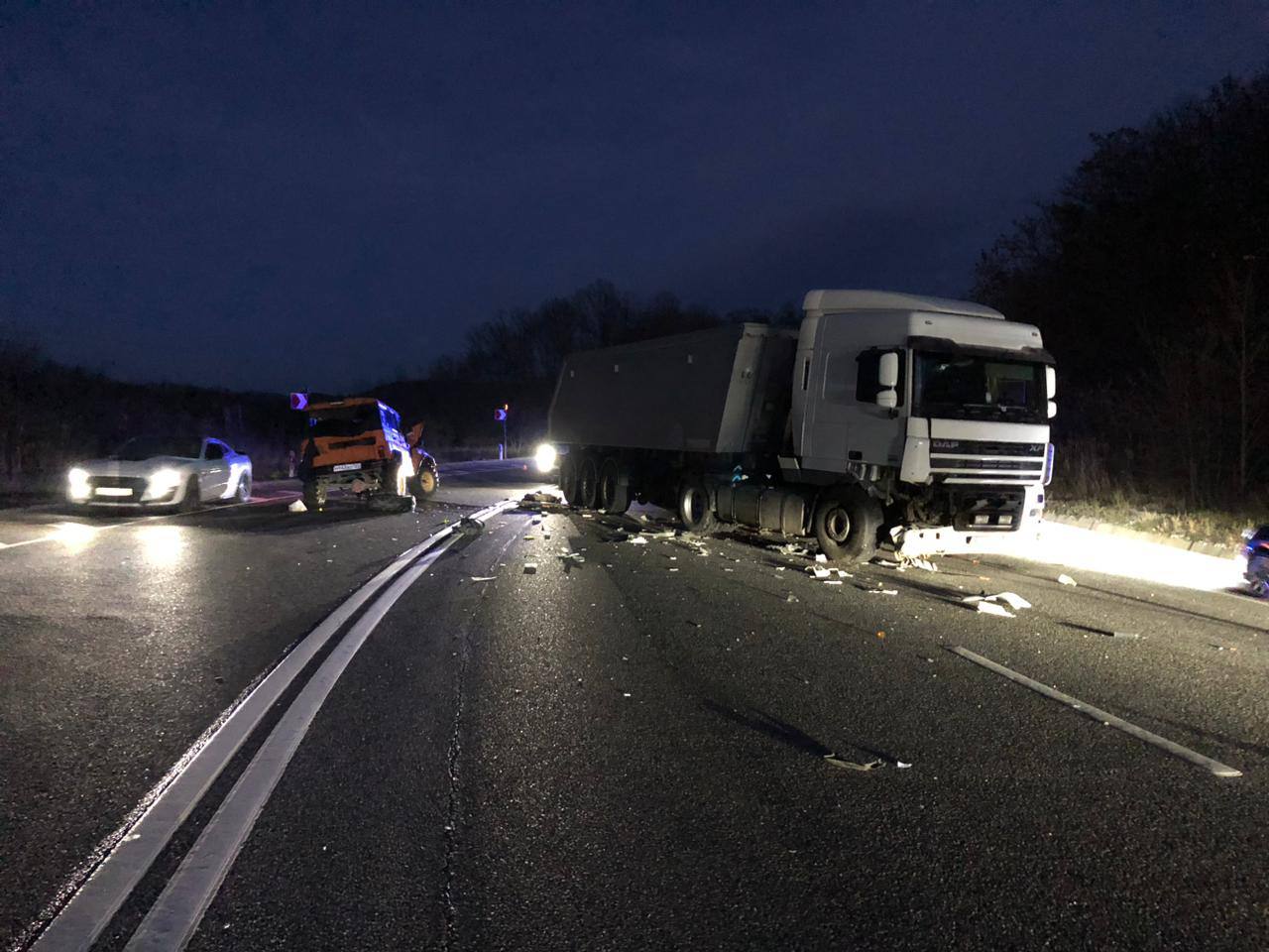 Оранжевый УАЗ вылетел на встречку и попал под фуру в Геленджике — водитель погиб.