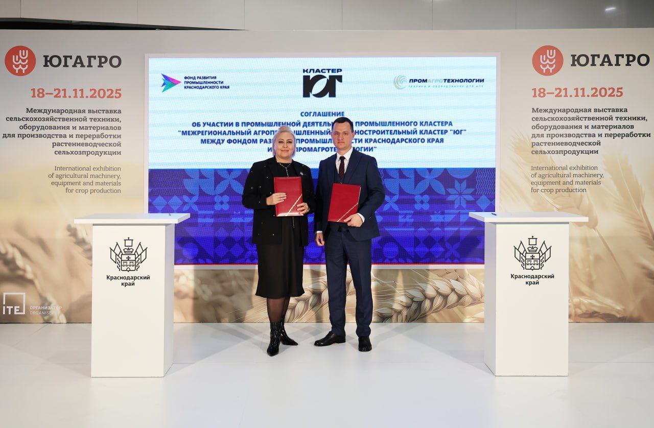 Соответствующее соглашение о сопровождении участников межрегионального машиностроительного кластера «Юг» подписали на выставке «ЮГАГРО-2025».
