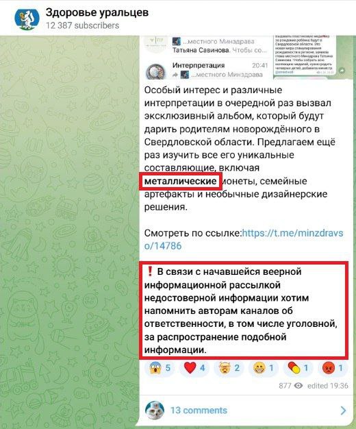 Подъехало разъяснение Минздрава региона, который начинает пугать СМИ уголовкой за распространение недостоверной информации. На самом деле молодым мамам будут дарить не пластиковые медали, а металлические монеты. Они являются частью "эксклюзивного семейного альбома", который будут выдавать роженицам в Свердловской области. Внимание, купить его нельзя, а так хотелось.