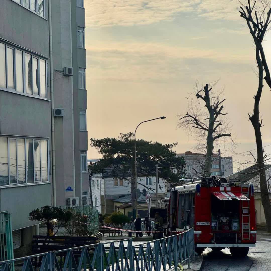 Движение транспорта перекрыли по улице в Туапсе, на которую упали обломки БПЛА. Повреждены несколько многоэтажек.