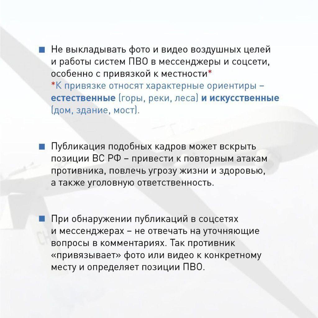 Внимание! Угроза атаки БПЛА.Уважаемые жители! В случае включения сирен «Внимание всем» отойдите от окон, укройтесь в помещениях без окон со сплошными стенами. Если вы на улице — зайдите в ближайшее здание, спуститесь в цоколь.Не размещайте в...