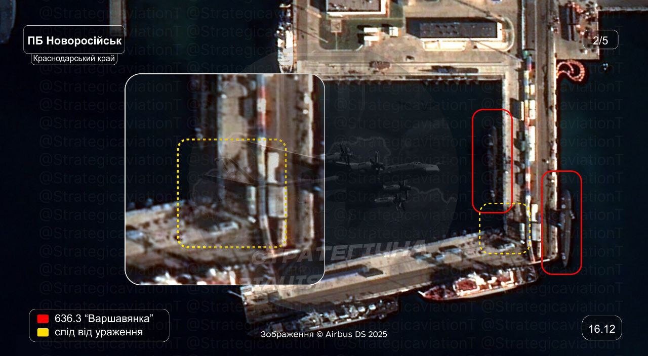 На второй фотографии тот же снимок подрыва пирса и двух подлодок, как и вчера. На четвертой фотографии какую-то из четырёх транспортируют в другое место.