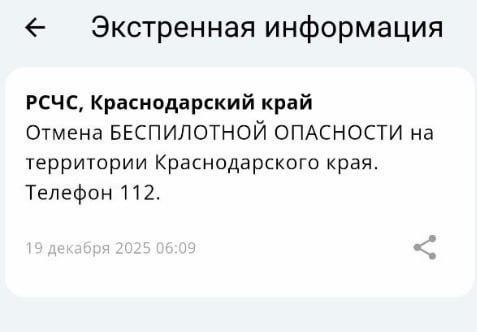 Ракетную опасность объявили в Краснодарском крае. Об этом сообщает МЧС. Подписывайтесь на «Ъ-Кубань»// Коммерсантъ Кубань-Черноморье