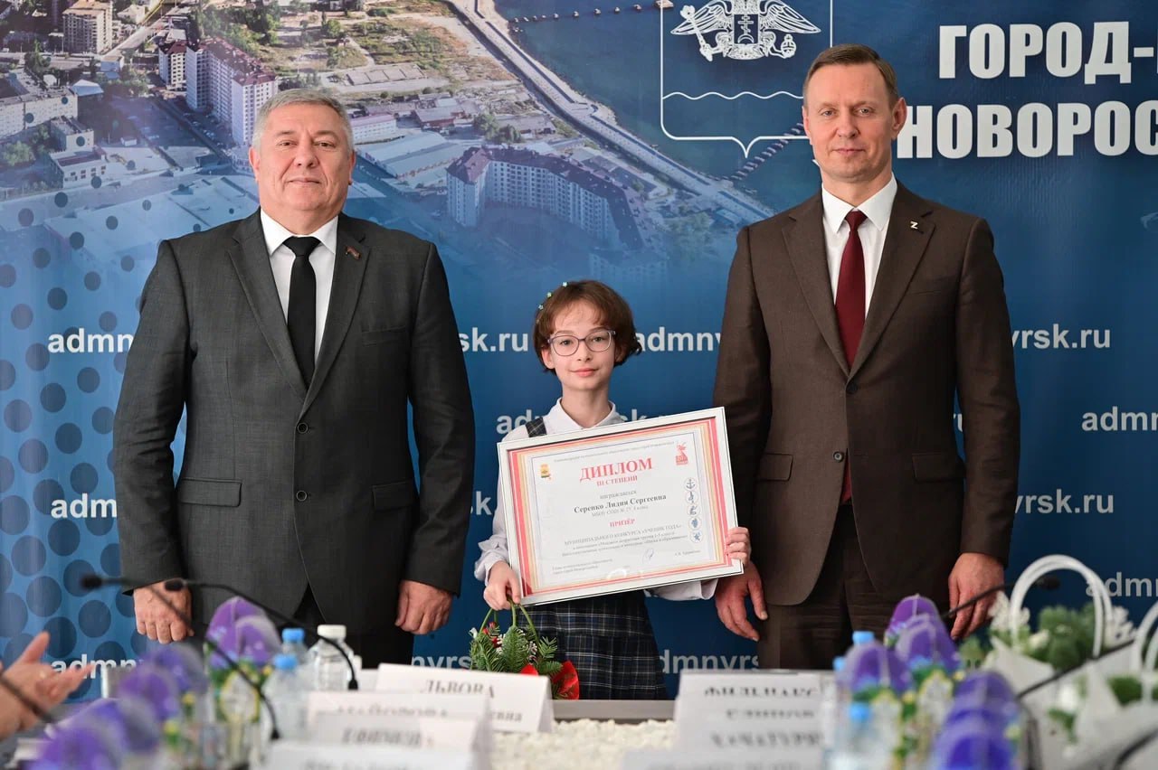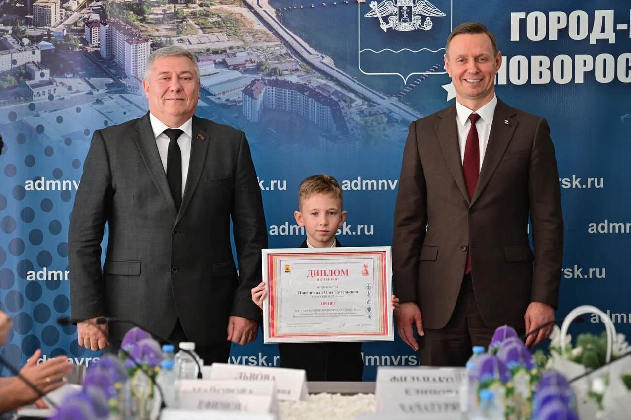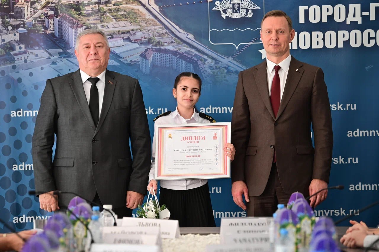 Совместно с председателем городской Думы Андреем Антоновым глава Новороссийска вручил ребятам дипломы и сертификаты на денежное вознаграждение.