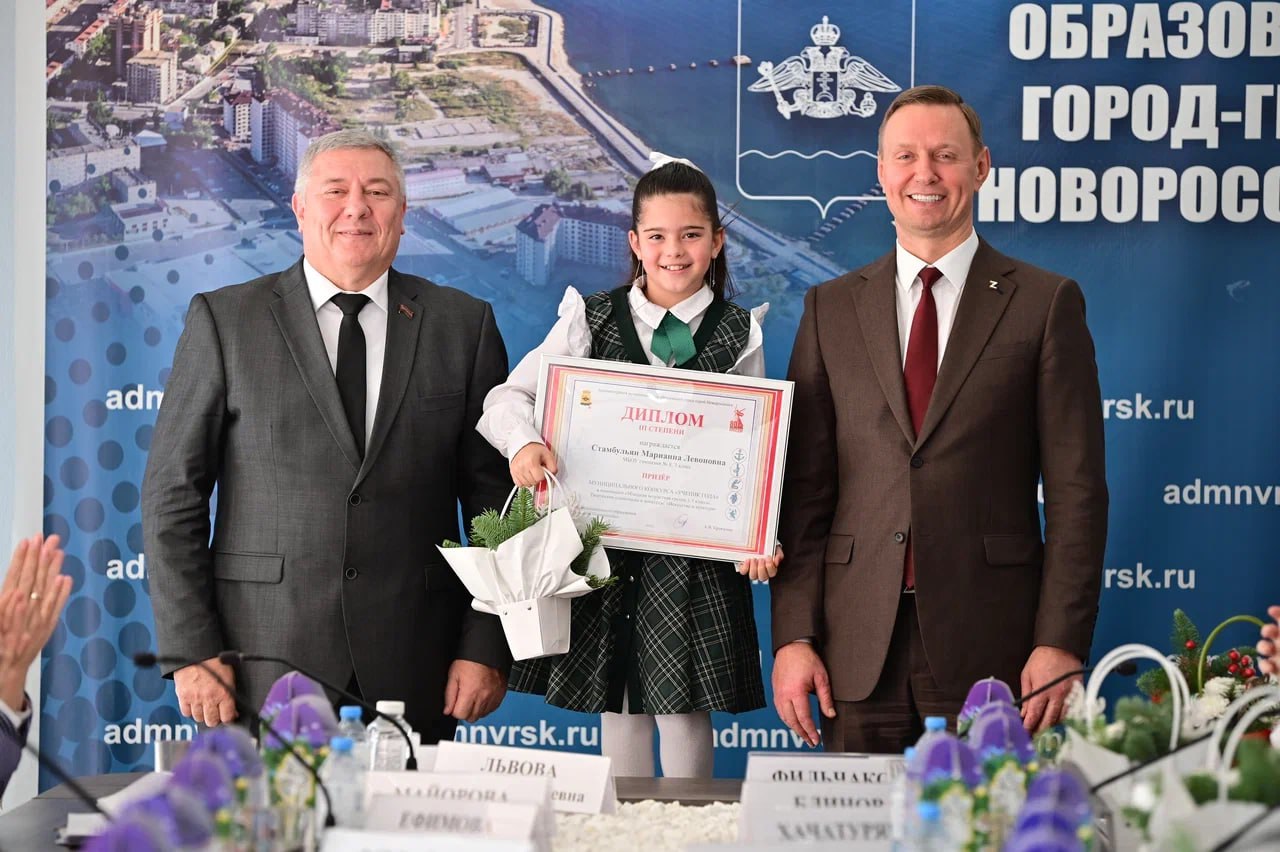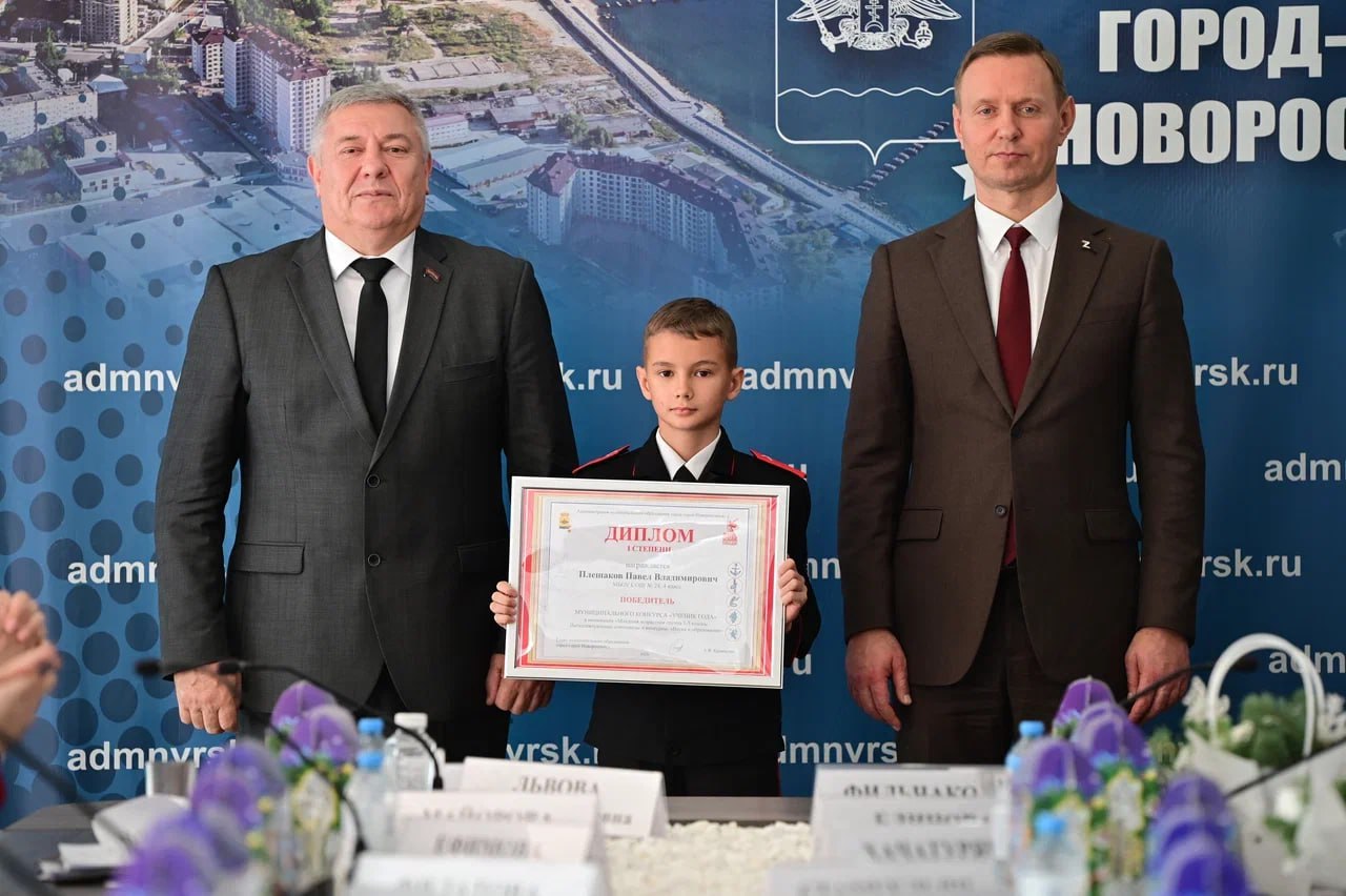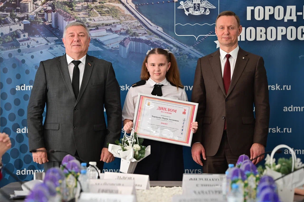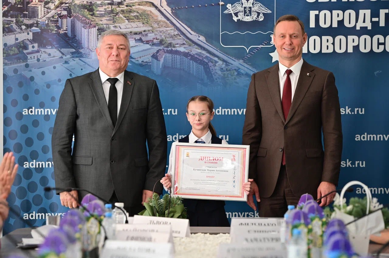 Совместно с председателем городской Думы Андреем Антоновым глава Новороссийска вручил ребятам дипломы и сертификаты на денежное вознаграждение.
