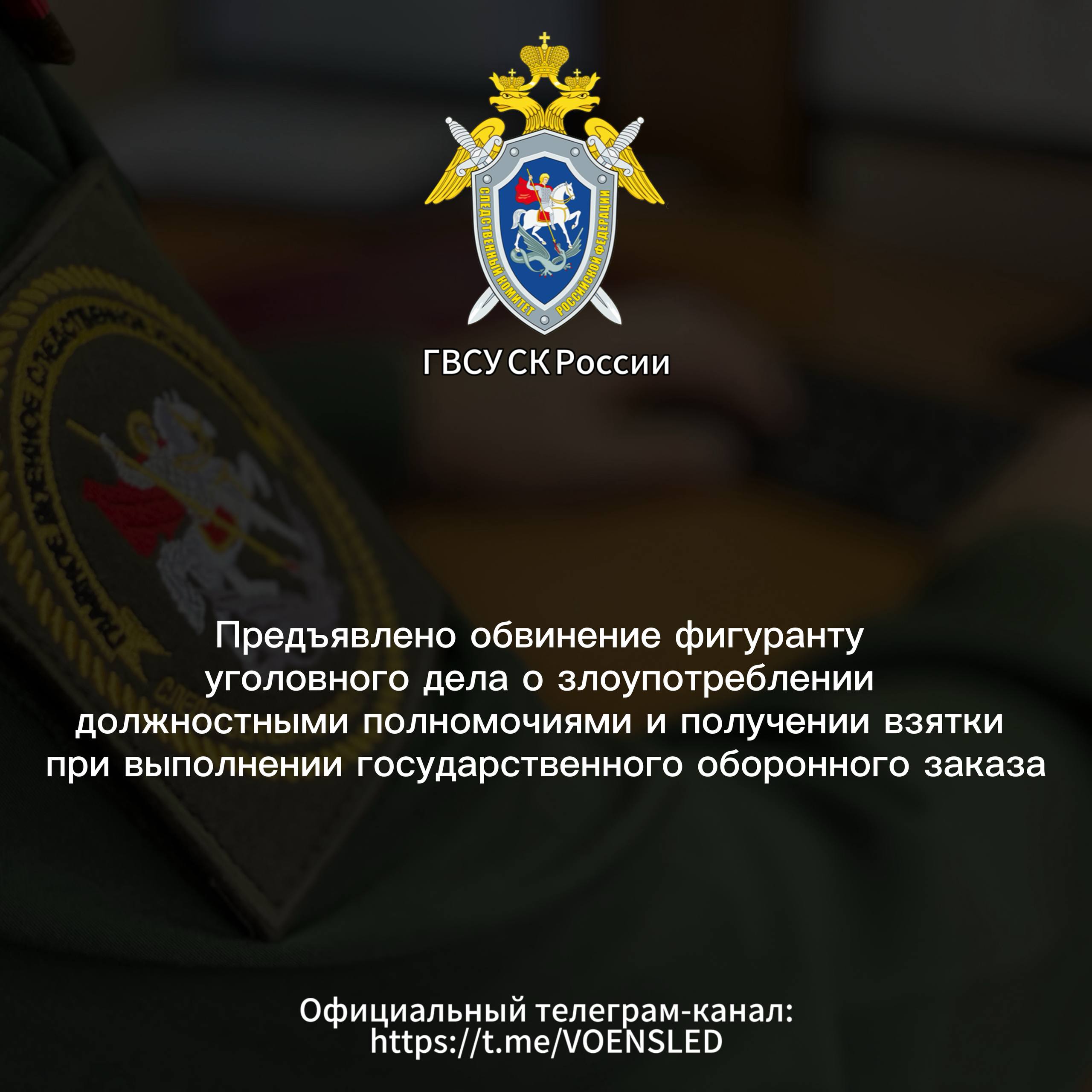 Предъявлено обвинение фигуранту уголовного дела о злоупотреблении должностными полномочиями и получении взятки при выполнении государственного оборонного заказа