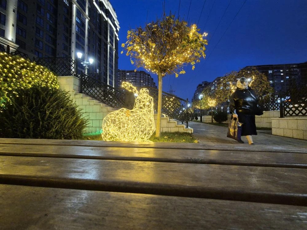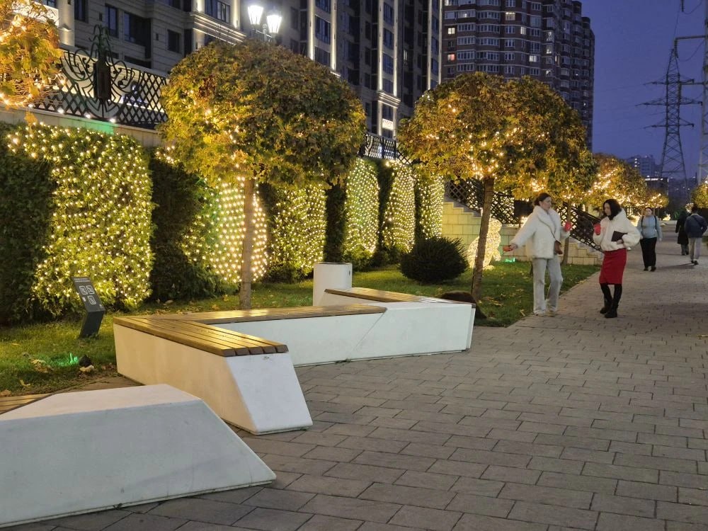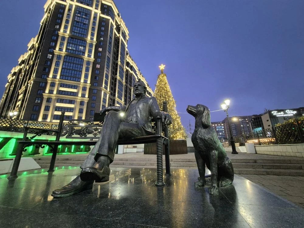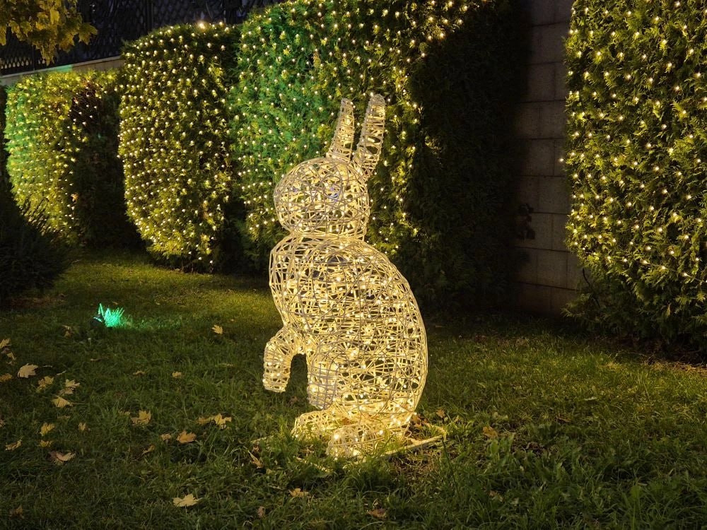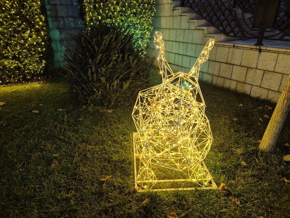 Очередная фотопрогулка посвящена скверу рядом с памятником Ивану Тургеневу. Здесь стоит шикарная ёлка, а зона отдыха украшена фигурами зайцев.
