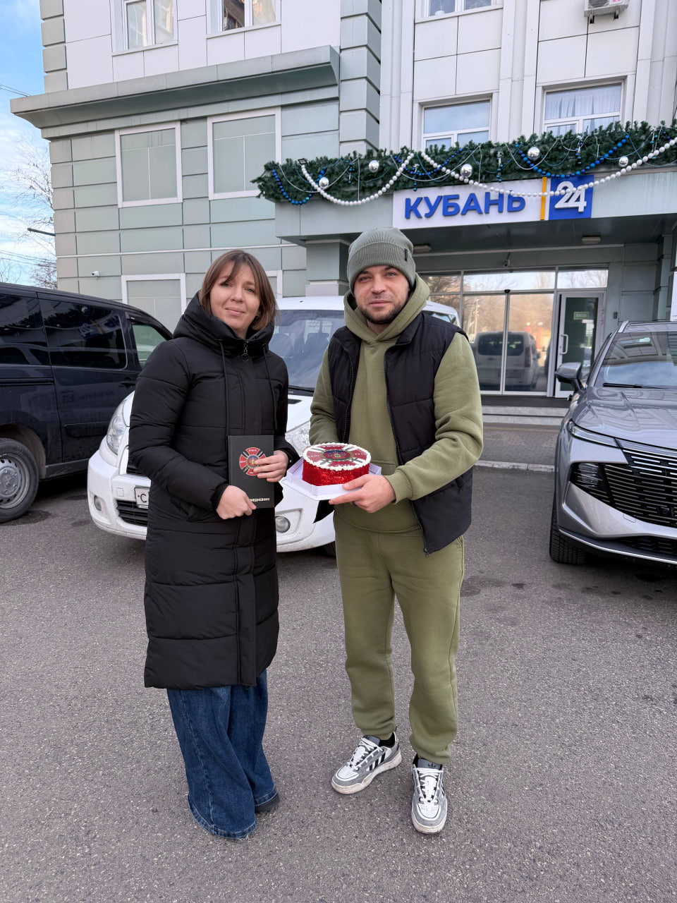 Эта встреча — повод от всего личного состава нашего батальона выразить искреннюю признательность всему коллективу канала. Мы говорим спасибо за ваш профессиональный и, что крайне важно, честный труд. Спасибо за то, что вы находите слова и кадры, чтобы донести до зрителей правду о нашей боевой и повседневной работе. В нынешнее время, когда информационное поле — это тоже поле битвы, ваша работа неоценима.Отдельно хотим поздравить «Кубань 24» с наступающим Новым годом! Желаем коллективу телеканала крепкого здоровья, сил, вдохновения и только правдивых репортажей. Пусть новый год принесет долгожданный мир и победу!, — сказал военный на встрече.
