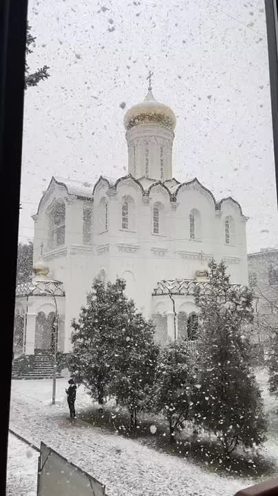 Горожане делятся роликами, на которых видно, какими хлопьями идет снег в столице Кубани.